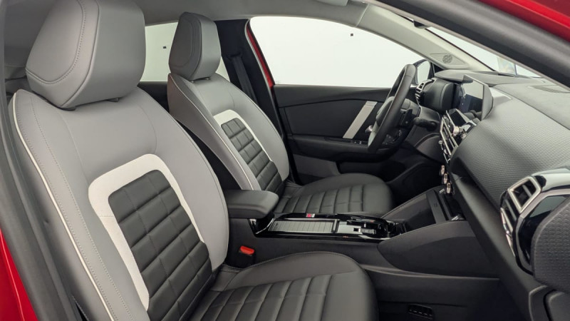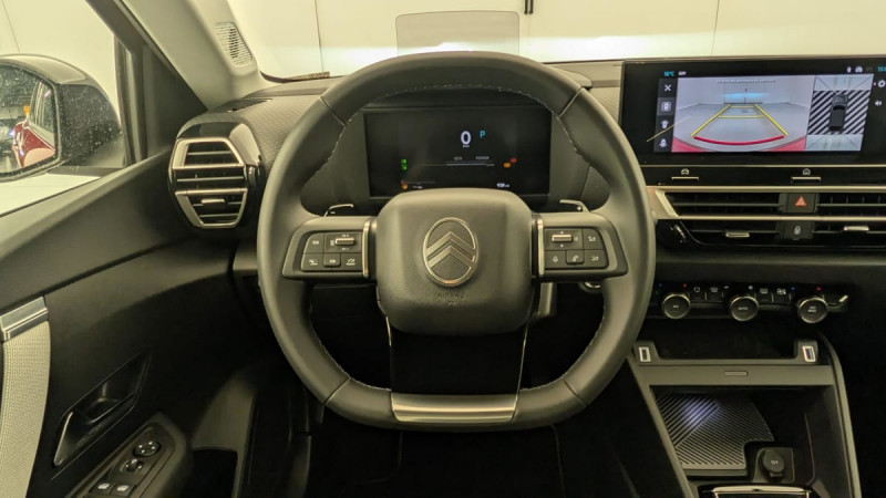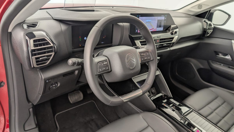 Détection de sous-gonflage / Volant cuir pleine fleur / Accès et démarrage mains libres Proximity (verrouillage, coffre et déverrouillage). / Plancher de coffre à 2 positions / ABS + AFU + ESP + REF / Suspension Citroën Advanced Comfort / Direction à assistance électrique variable / Siège conducteur avec réglage lombaire / Eclairage d'accueil et d'accompagnement / Pare-soleil avec miroir occultable côtés conducteur et passager / Ecran central 10" tactile: - Système audio numérique (DAB) 6 HPs - Apple CarPlay et Android Auto sans fil - Reconnaissance vocale - Kit mains libres Bluetooth - Boîtier télématique : Appel d'urgence / Console centrale haute avec rangements fermés et 2 porte-gobelets et accoudoir coulissant / Fixations ISOFIX sur sièges latéraux AR (3 points d'encrage avec Top TetherTether) / Commandes au volant du système audio et du régulateur-limiteur de vitesse / Jantes alliage 18" AMBER Diamantées / Feux diurnes à LED avec signature lumineuse / Feux AR à LED avec signature lumineuse / Pack Safety : Allumage automatique des feux de croisement Coffee Break Alert Alerte attention conducteur Alerte Risque Collision Alerte active de Franchissement Involontaire de ligne Reconnaissance des panneaux de vitesse et recommandation Témoin de non-bouclage des ceintures de sécurité conducteur et passager Active Safety Brake (freinage automatique d'urgence) / Pack Drive Assist : Commutation automatique des feux de route Système de surveillance d'angle mort Active Safety Brake 2.0 Fonctionne à l'aide d'un Radar de 7 à 140 km/h, même de nuit et détecte les cyclistes Reconnaissance étendue des panneaux et recommandation de vitesse Régulateur de vitesse adaptatif avec fonction Stop & Go (dispositif ajustant la vitesse en fonction du véhicule précédent) / Garnissage Toile enduite Noir/Toile enduite Gris Clair Ambiance Metropolitan Grey + Sièges Advanced Comfort / Rétroviseur intérieur électrochrome / Boîte automatique 6 rapports / Pack Navigation Connectée : Top Rear Vision de la caméra de recul Navigation 3D Connectée sur écran central 10'' tactile - Système de navigation TomTom - Reconnaissance vocale avec langage naturel - Interface personnalisable Interface personnalisable avec Widgets Reconnaissance vocale avec langage naturel Combiné numérique couleur 7" TFT / Essuie-vitre AV automatique (capteur de pluie) / Frein de stationnement électrique automatique / Kit de dépannage provisoire de pneumatiques / / Véhicules équivalents: 308 - Mégane - Golf