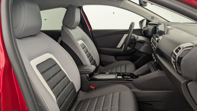 Détection de sous-gonflage / Volant cuir pleine fleur / Accès et démarrage mains libres Proximity (verrouillage, coffre et déverrouillage). / Plancher de coffre à 2 positions / ABS + AFU + ESP + REF / Suspension Citroën Advanced Comfort / Direction à assistance électrique variable / Siège conducteur avec réglage lombaire / Eclairage d'accueil et d'accompagnement / Pare-soleil avec miroir occultable côtés conducteur et passager / Ecran central 10" tactile: - Système audio numérique (DAB) 6 HPs - Apple CarPlay et Android Auto sans fil - Reconnaissance vocale - Kit mains libres Bluetooth - Boîtier télématique : Appel d'urgence / Console centrale haute avec rangements fermés et 2 porte-gobelets et accoudoir coulissant / Fixations ISOFIX sur sièges latéraux AR (3 points d'encrage avec Top TetherTether) / Commandes au volant du système audio et du régulateur-limiteur de vitesse / Jantes alliage 18" AMBER Diamantées / Feux diurnes à LED avec signature lumineuse / Feux AR à LED avec signature lumineuse / Pack Safety : Allumage automatique des feux de croisement Coffee Break Alert Alerte attention conducteur Alerte Risque Collision Alerte active de Franchissement Involontaire de ligne Reconnaissance des panneaux de vitesse et recommandation Témoin de non-bouclage des ceintures de sécurité conducteur et passager Active Safety Brake (freinage automatique d'urgence) / Pack Drive Assist : Commutation automatique des feux de route Système de surveillance d'angle mort Active Safety Brake 2.0 Fonctionne à l'aide d'un Radar de 7 à 140 km/h, même de nuit et détecte les cyclistes Reconnaissance étendue des panneaux et recommandation de vitesse Régulateur de vitesse adaptatif avec fonction Stop & Go (dispositif ajustant la vitesse en fonction du véhicule précédent) / Garnissage Toile enduite Noir/Toile enduite Gris Clair Ambiance Metropolitan Grey + Sièges Advanced Comfort / Rétroviseur intérieur électrochrome / Boîte automatique 6 rapports / Pack Navigation Connectée : Top Rear Vision de la caméra de recul Navigation 3D Connectée sur écran central 10'' tactile - Système de navigation TomTom - Reconnaissance vocale avec langage naturel - Interface personnalisable Interface personnalisable avec Widgets Reconnaissance vocale avec langage naturel Combiné numérique couleur 7" TFT / Essuie-vitre AV automatique (capteur de pluie) / Frein de stationnement électrique automatique / Kit de dépannage provisoire de pneumatiques / / Véhicules équivalents: 308 - Mégane - Golf