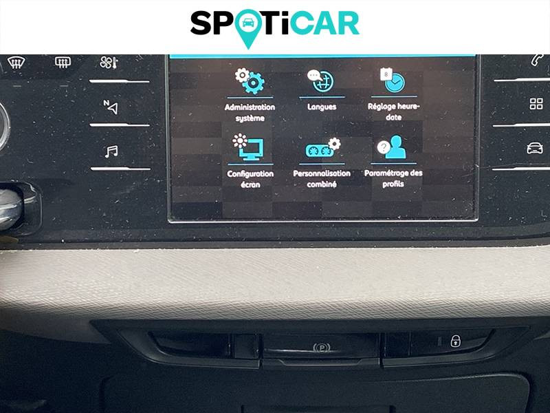 ABS avec REF, AFU et ESP / Accoudoirs centraux AV réglables en inclinaison / Aérateurs bizone en rang 2 / CITROËN Connect Nav avec CITROËN Connect Box / Coffee Break Alert / Contrôle de Traction Intelligent / Détecteur de sous-gonflage / Ecran panoramique 12" HD / Essuie-vitre AV automatique (capteur de pluie) / Frein de stationnement électrique automatique / Garnissage Tissu Milazzo Grey / Indicateur de changement de rapport / Kit de dépannage provisoire des pneumatiques / Pack Safety - Active Safety Brake - Alerte active de Franchissement Involontaire de Ligne - Alerte Attention Conducteur - Alerte Risque Collision - Coffee Break Alert - Reconnaissance des panneaux de vitesse et recommandation - Régulateur-limiteur de vitesse - Témoin de non-bouclage des ceintures de sécurité conducteur et passagers / Projecteurs antibrouillard sans éclairage statique d'intersection / Régulateur - limiteur de vitesse programmable / Sièges en rang 2 coulissants / Signature latérale chromée / Signature lumineuse à LED / Système audio bi-tuner RDS MP3 / Tablettes aviation au dos des sièges AV / Tablette tactile 7" de commande des fonctionnalités / Volant en croûte de cuir