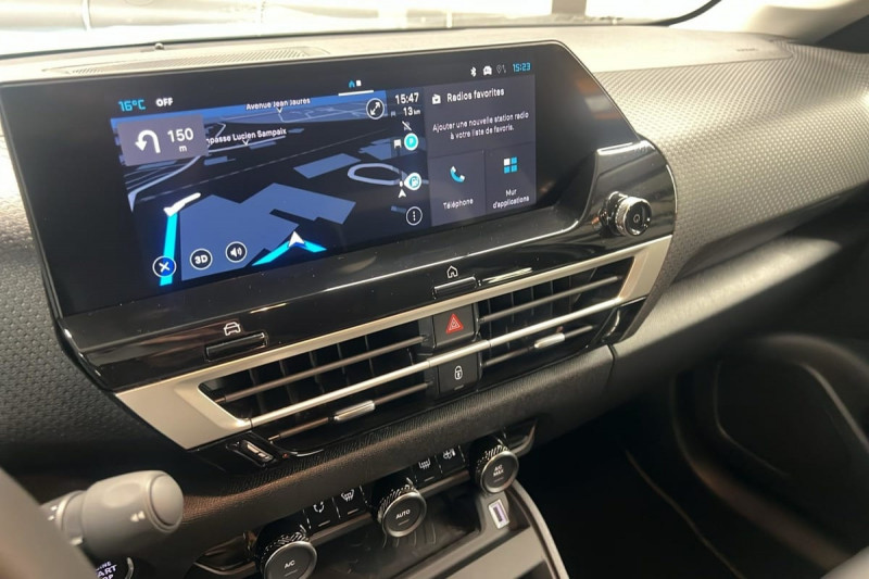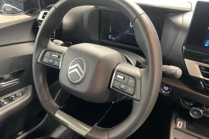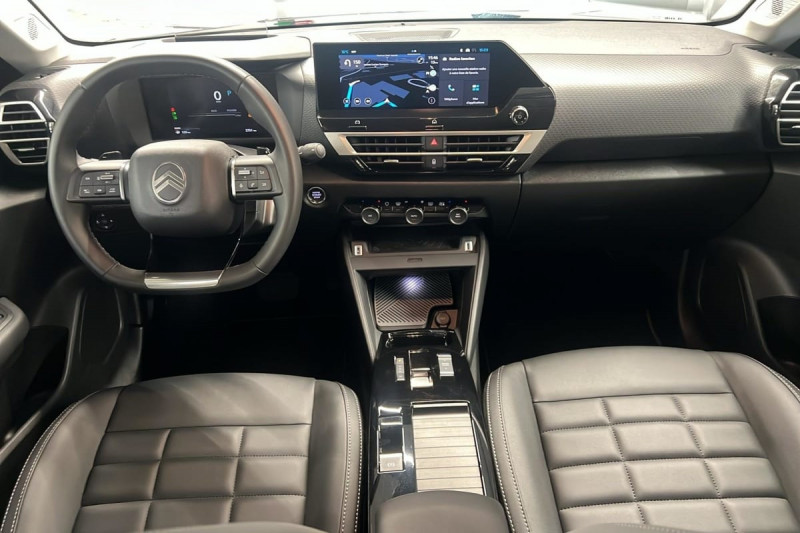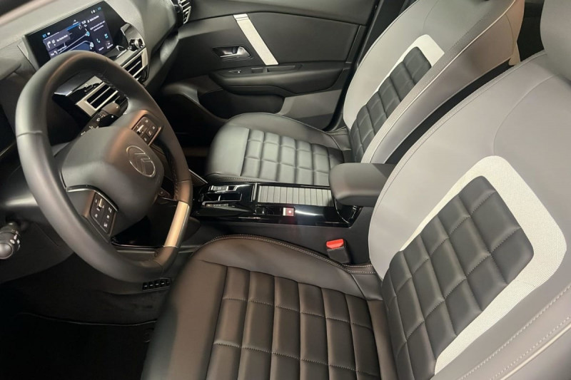 Détection de sous-gonflage / Volant cuir pleine fleur / Console centrale haute avec rangements et accoudoir / Accès et démarrage mains libres Proximity 2 Télécommandes 3 boutons (verrouillage, coffre et déverrouillage) / Plancher de coffre à 2 positions / ABS + AFU + ESP + REF / Poche aumônière au dos des sièges AV / Suspension Citroën Advanced Comfort / Siège conducteur avec réglage lombaire / Ecran central 10" tactile: - Système audio numérique (DAB) 6 HPs - Apple CarPlay et Android Auto sans fil - Reconnaissance vocale - Kit mains libres Bluetooth - Boîtier télématique : Appel d'urgence / Jantes alliage 18" AMBER Diamantées / Feux diurnes à LED avec signature lumineuse / Feux AR à LED avec signature lumineuse / Pack Safety : Allumage automatique des feux de croisement Régulateur-limiteur de vitesse Coffee Break Alert Alerte attention conducteur Alerte Risque Collision Alerte active de Franchissement Involontaire de ligne Reconnaissance des panneaux de vitesse et recommandation Témoin de non-bouclage des ceintures de sécurité conducteur et passager Active Safety Brake (freinage automatique d'urgence) / Pack Drive Assist : Commutation automatique des feux de route Système de surveillance d'angle mort Active Safety Brake 2.0 Fonctionne à l'aide d'un Radar de 7 à 140 km/h, même de nuit et détecte les cyclistes Reconnaissance étendue des panneaux et recommandation de vitesse Régulateur de vitesse adaptatif avec fonction Stop & Go (dispositif ajustant la vitesse en fonction du véhicule précédent) / Garnissage Toile enduite Noir/Toile enduite Gris Clair Ambiance Metropolitan Grey + Sièges Advanced Comfort / Rétroviseur intérieur électrochrome / Boîte automatique 6 rapports / Pack Navigation Connectée : Top Rear Vision de la caméra de recul Navigation 3D Connectée sur écran central 10'' tactile - Système de navigation TomTom - Reconnaissance vocale avec langage naturel - Interface personnalisable avec Widgets Interface personnalisable avec Widgets Combiné numérique couleur 7" TFT / Frein de stationnement électrique automatique / Poignées de portes extérieures couleur caisse / Kit de dépannage provisoire de pneumatiques / / Véhicules équivalents: 308 - Mégane - Golf
