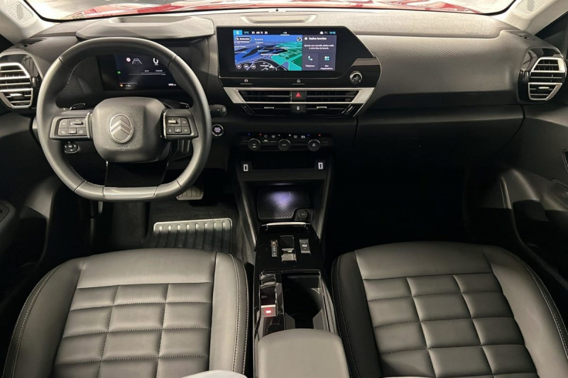 Détection de sous-gonflage / Volant cuir pleine fleur / Sécurité enfants mécanique / Accès et démarrage mains libres Proximity / Plancher de coffre à 2 positions / ABS + AFU + ESP + REF / Suspension Citroën Advanced Comfort / Direction à assistance électrique variable / Siège conducteur avec réglage lombaire / Eclairage d'accueil et d'accompagnement / Pare-soleil avec miroir occultable côtés conducteur et passager / Eclairage d'accompagnement sous les rétroviseurs extérieurs / Ecran central 10" tactile: - Système audio numérique (DAB) 6 HPs - Apple CarPlay et Android Auto sans fil - Reconnaissance vocale - Kit mains libres Bluetooth - Boîtier télématique : Appel d'urgence / Fixations ISOFIX sur sièges latéraux AR (3 points d'encrage avec Top TetherTether) / Commandes au volant du système audio et du régulateur-limiteur de vitesse / Jantes alliage 18" AMBER Diamantées / Feux diurnes à LED avec signature lumineuse / Feux AR à LED avec signature lumineuse / Pack Safety : Allumage automatique des feux de croisement Coffee Break Alert Alerte attention conducteur Alerte Risque Collision Alerte active de Franchissement Involontaire de ligne Reconnaissance des panneaux de vitesse et recommandation Témoin de non-bouclage des ceintures de sécurité conducteur et passager Active Safety Brake (freinage automatique d'urgence) / Pack Drive Assist : Commutation automatique des feux de route Système de surveillance d'angle mort Active Safety Brake 2.0 Fonctionne à l'aide d'un Radar de 7 à 140 km/h, même de nuit et détecte les cyclistes Reconnaissance étendue des panneaux et recommandation de vitesse Régulateur de vitesse adaptatif avec fonction Stop & Go (dispositif ajustant la vitesse en fonction du véhicule précédent) / Garnissage Toile enduite Noir/Toile enduite Gris Clair Ambiance Metropolitan Grey + Sièges Advanced Comfort / Rétroviseur intérieur électrochrome / Boîte automatique 6 rapports / 2 prises USB au rang 1 (1 type C + 1 type A) + 1 prise USB en rang 2 (type A) / Pack Navigation Connectée : Top Rear Vision de la caméra de recul Navigation 3D Connectée sur écran central 10'' tactile - Système de navigation TomTom - Reconnaissance vocale avec langage naturel - Interface personnalisable Interface personnalisable avec Widgets Reconnaissance vocale avec langage naturel Combiné numérique couleur 7" TFT / Essuie-vitre AV automatique (capteur de pluie) / Frein de stationnement électrique automatique / Kit de dépannage provisoire de pneumatiques / / Véhicules équivalents: 308 - Mégane - Golf