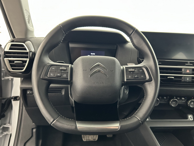 2 Prises USB au rang 1 (1 type A + 1 type C pour fonction Mirror Screen) + 1 Prise USB au rang 2 (type A) / ABS + AFU + ESP + REF / Accoudoir en Tissu Brasilia - Noir Mistral / Aérateurs centraux en rang 2 / Bande de dossiers en Tissu Curitiba Blanc/Noir / Clignotants impulsionnels / Color Clips Pure Black Pièce de décor colorée sur les pare-choc. Interchangeables disponibles en accessoire. / Combiné numérique couleur 5.5" TFT / Commandes au volant du système audio et du régulateur-limiteur de vitesse / Condamnation centralisée avec Plip et condamnation automatique du coffre et des portes en roulant / Console centrale haute avec rangements fermés et 2 porte-gobelets et accoudoir coulissant / Décor de panneaux de porte injecté Gris Horizon / Détection de sous-gonflage / Direction à assistance électrique variable / Eclairage d'accueil et d'accompagnement / Ecran central 10" tactile: - Système audio numérique (DAB) 6 HPs - Apple CarPlay et Android Auto sans fil - Reconnaissance vocale - Kit mains libres Bluetooth - Boîtier télématique : Appel d'urgence et Citroën Assistance / Elargisseurs d'aile et bas de caisse Noir Mat / Enjoliveurs 18" AEROTECH / Essuie-vitre AV automatique (capteur de pluie) / Feux AR à LED avec signature lumineuse / Feux diurnes à LED avec signature lumineuse / Fixations ISOFIX sur sièges latéraux AR (3 points d'encrage avec Top TetherTether) / Frein de stationnement électrique automatique / Garnissage Tissu Hello Noir/Toile enduite Gris Ambiance Urban Grey + Sièges Advanced Comfort / Jupe AR Noir Brilliant / Kit de dépannage provisoire de pneumatiques / Lécheurs de vitres latérales Noir / Médaillons de porte AV en Tissu Brasilia - Noir Mistral / Pare-soleil avec miroir occultable côtés conducteur et passager / Plafonniers AV et AR à lampes / Poche aumônière au dos des sièges AV / Poignées de portes extérieures couleur caisse / Sabot AV Gris Mercury Satin / Sécurité enfants mécanique / Siège conducteur avec réglage lombaire / Suspension Citroën Advanced Comfort / Pack Safety - Active Safety Brake (fonctionne de 30 à 80 km/h et détecte les piétons et les cyclistes) - Alerte active de Franchissement Involontaire de Ligne - Alerte Attention Conducteur - Alerte Risque Collision - Allumage automatique des feux de croisement - Coffee Break Alert - Reconnaissance des panneaux de vitesse et recommandation - Régulateur-limiteur de vitesse - Témoin de non-bouclage des ceintures de sécurité conducteur et passagers: Reconnaissance des panneaux de vitesse et recommandation, Témoin de non-bouclage des ceintures de sécurité conducteur et passager, Active Safety Brake (fonctionne de 30 à 80 km/h et détecte les piétons et les cyclistes), Allumage automatique des feux de croisement, Régulateur-limiteur de vitesse, Coffee Break Alert, Alerte attention conducteur, Alerte Risque Collision, Alerte active de Franchissement Involontaire de ligne / / Véhicules équivalents: 308 - Mégane - Golf
