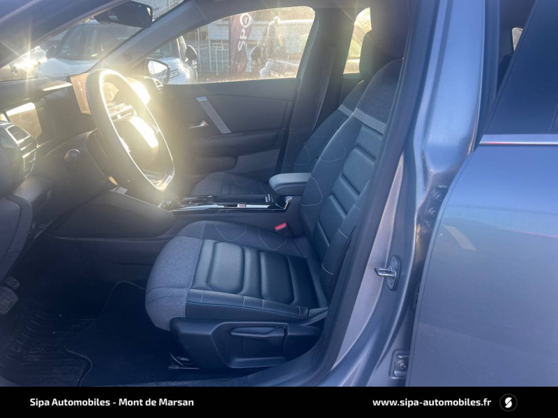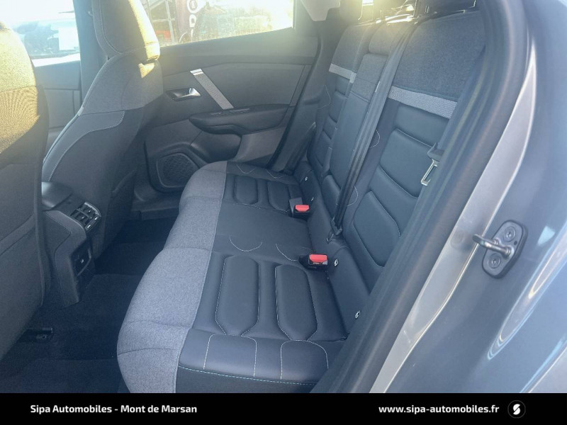 1 prise USB en rang 2 (type A) / 2 prises USB au rang 1 (1 type C + 1 type A) / ABS avec REF, AFU et ESP / Accès et démarrage mains libres Proximity / Aérateurs centraux en rang 2 / Combiné numérique couleur avec rétro-éclairage / Commutation automatique des feux de route / Console centrale haute avec rangements et accoudoir / Détection de sous-gonflage / Eclairage d'accompagnement sous les rétroviseurs extérieurs / Elargisseurs d'aile et bas de caisse Noir Mat / Essuie-vitre AV automatique (capteur de pluie) / Frein de stationnement électrique automatique / Garnissage textile effet cuir Noir/Tissu Gris Ambiance Metropolitan Grey + Sièges Advanced Comfort / Jantes alliage 18" AEROBLADE Diamantées / Jupe AR Noir Brilliant / Kit de dépannage provisoire de pneumatiques / My Citroën Assist : Citroën Connect Box avec Pack SOS et assistance inclus / My Citroën Drive Plus: navigation sur tablette tactile 10'' comprend le système de navigation 3D TomTom, la reconnaissance vocale avec langage naturel, l'interface personnalisable, et durant 3 ans les services My Citroën Drive Plus (inclut les services «Zones de danger», «Info Trafic», «Stations-service», «Parkings, «Météo» et «Recherche locale») / My Citroën Play - Mirror Screen sans fils, compatible Android Auto et Apple CarPlay, Système audio numérique (DAB) MP3 6 HP,Tablette tactile 10" / Pack Color Glossy Silver / Pack Drive Assist Aide au stationnement AV et latéral, Commutation automatique des feux de route, Régulateur de vitesse adaptatif avec fonction Stop & Go,Système de surveillance d'angle mort / Pack Safety 2 / Pack Safety - Active Safety Brake - Alerte active de Franchissement Involontaire de Ligne - Alerte Attention Conducteur - Alerte Risque Collision - Coffee Break Alert - Reconnaissance des panneaux de vitesse et recommandation - Régulateur-limiteur de vitesse - Témoin de non-bouclage des ceintures de sécurité conducteur et passagers / Pack Style Jonc chromé sur les lécheurs de vitres latérales,Vitres et lunette AR surteintées / Plancher de coffre à 2 positions / Poche aumônière au dos des sièges AV / Poignées de portes extérieures couleur caisse / Prise 12 V en rang 1 / Projecteurs antibrouillard LED avec éclairage statique d'intersection / Projecteurs LED avec signature lumineuse en V / Rétroviseur intérieur électrochrome / Siège passager avec réglage lombaire / Sièges Advanced Comfort / Smart Pad Support Citroen / Suspension Citroën Advanced Comfort / Système audio numérique (DAB) MP3 6 HP / Tiroir de planche de bord / Top Rear Vision (caméra de recul avec visualisation 180° sur tablette) / Volant cuir pleine fleur
