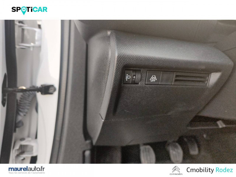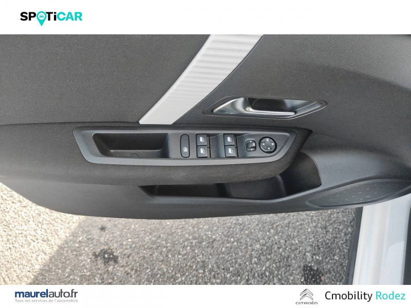 1 prise USB type C en rang 1 / ABS avec REF, AFU et ESP / Combiné numérique couleur / Détection de sous-gonflage / Elargisseurs d'aile et bas de caisse Noir Mat / Enjoliveurs 16" SPRING / Essuie-vitre AV automatique (capteur de pluie) / Garnissage Tissu Meanwhile/Tissu Noir / Jupe AR Noir Brilliant / Kit de dépannage provisoire de pneumatiques / My Citroën Assist: Citroën Connect Box avec Pack SOS et assistance inclus / My Citroën Drive": Citroën Connect Nav numérique sur tablette tactile 10'' comprend le système de navigation TomTom, la reconnaissance vocale et durant 3 ans les services Connect Nav (inclut les services « Zones de danger », « Info Trafic », « Stations-service », « Parkings », « Météo » et « Recherche locale »). / My Citroën Play - Mirror Screen sans fils, compatible Android Auto et Apple CarPlay, Système audio numérique (DAB) MP3 6 HP,Tablette tactile 10" / Pack Color Glossy Black / Pack Safety - Active Safety Brake - Alerte active de Franchissement Involontaire de Ligne - Alerte Attention Conducteur - Alerte Risque Collision - Coffee Break Alert - Reconnaissance des panneaux de vitesse et recommandation - Régulateur-limiteur de vitesse - Témoin de non-bouclage des ceintures de sécurité conducteur et passagers / Poignées de portes extérieures Noir Brillant / Prise 12 V en rang 1 / Projecteurs antibrouillard LED avec éclairage statique d'intersection / Siège conducteur avec réglage lombaire et accoudoir / Suspension Citroën Advanced Comfort / Système audio numérique (DAB) MP3 6 HP