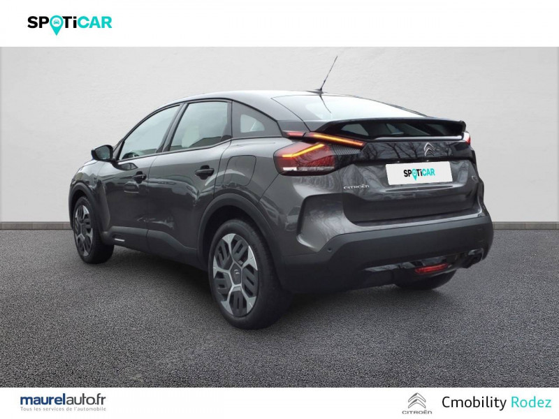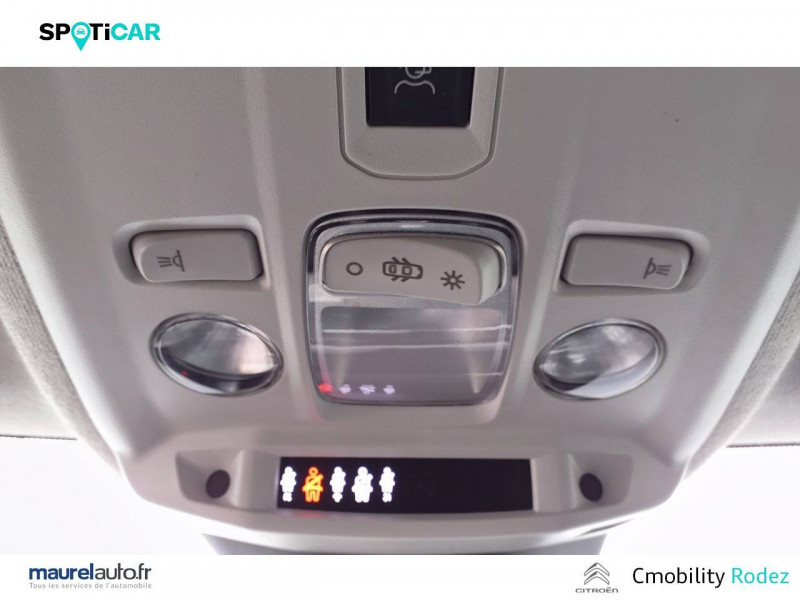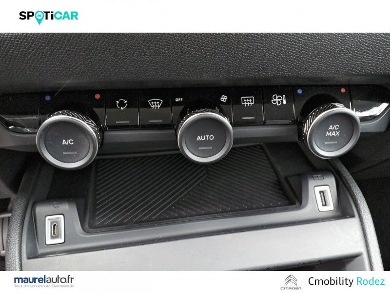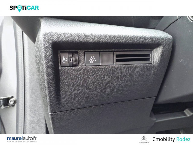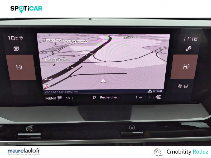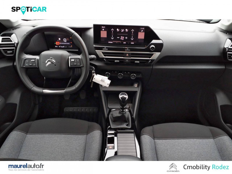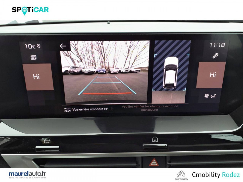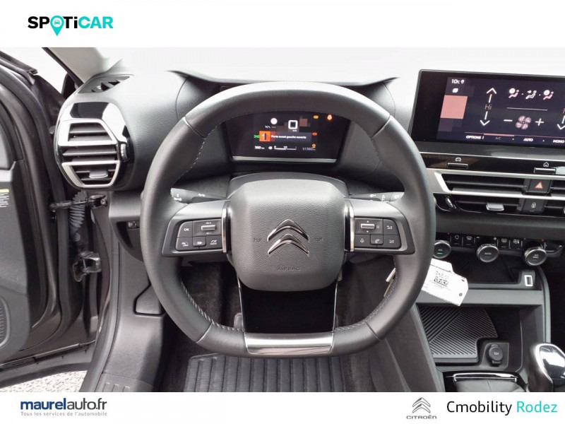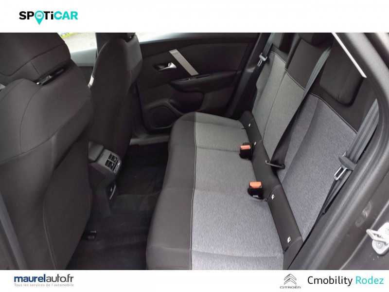 1 prise USB en rang 2 (type A) / 2 prises USB au rang 1 (1 type C + 1 type A) / ABS avec REF, AFU et ESP / Aérateurs centraux en rang 2 / Combiné numérique couleur / Console centrale haute avec rangements et accoudoir / Détection de sous-gonflage / Elargisseurs d'aile et bas de caisse Noir Mat / Enjoliveurs 18" AEROTECH / Essuie-vitre AV automatique (capteur de pluie) / Frein de stationnement électrique automatique / Garnissage Tissu Meanwhile/Tissu Noir / Jupe AR Noir Brilliant / Kit de dépannage provisoire de pneumatiques / My Citroën Assist: Citroën Connect Box avec Pack SOS et assistance inclus / My Citroën Play - Mirror Screen sans fils, compatible Android Auto et Apple CarPlay, Système audio numérique (DAB) MP3 6 HP,Tablette tactile 10" / Pack Color Glossy Black / Pack Safety - Active Safety Brake - Alerte active de Franchissement Involontaire de Ligne - Alerte Attention Conducteur - Alerte Risque Collision - Coffee Break Alert - Reconnaissance des panneaux de vitesse et recommandation - Régulateur-limiteur de vitesse - Témoin de non-bouclage des ceintures de sécurité conducteur et passagers / Poignées de portes extérieures Noir Brillant / Prise 12 V en rang 1 / Projecteurs antibrouillard LED avec éclairage statique d'intersection / Projecteurs LED avec signature lumineuse en V / Siège conducteur avec réglage lombaire et accoudoir / Suspension Citroën Advanced Comfort