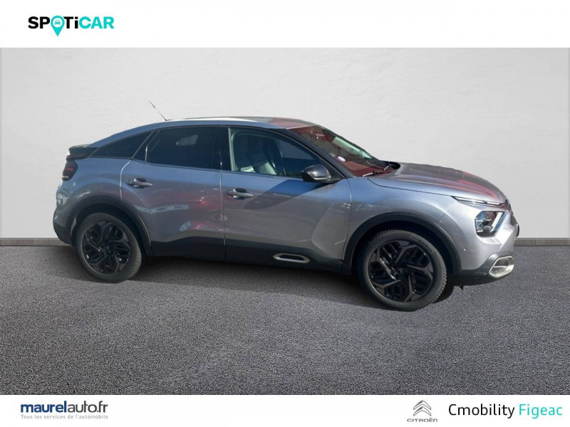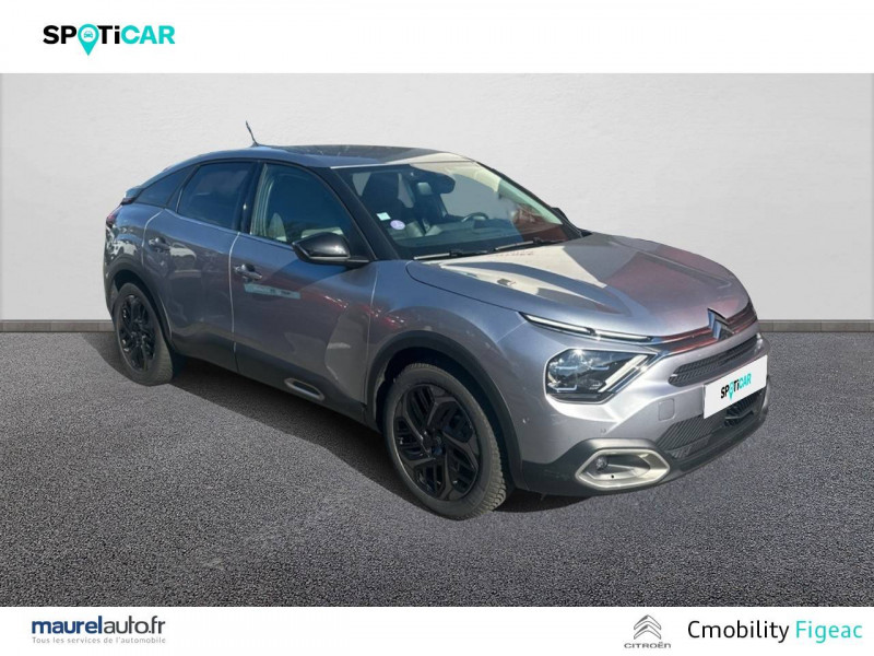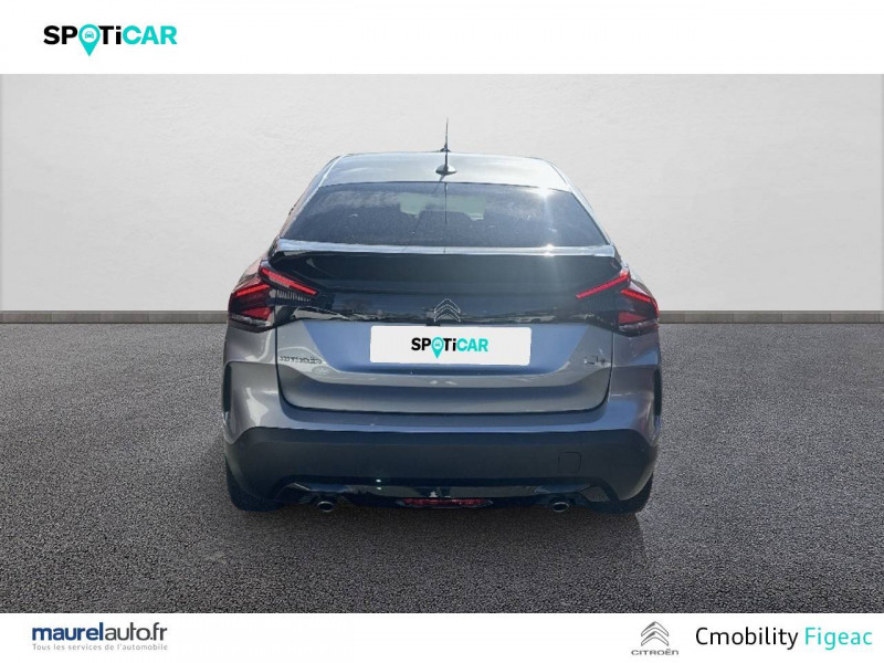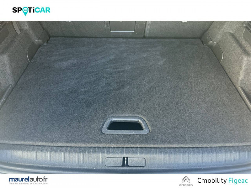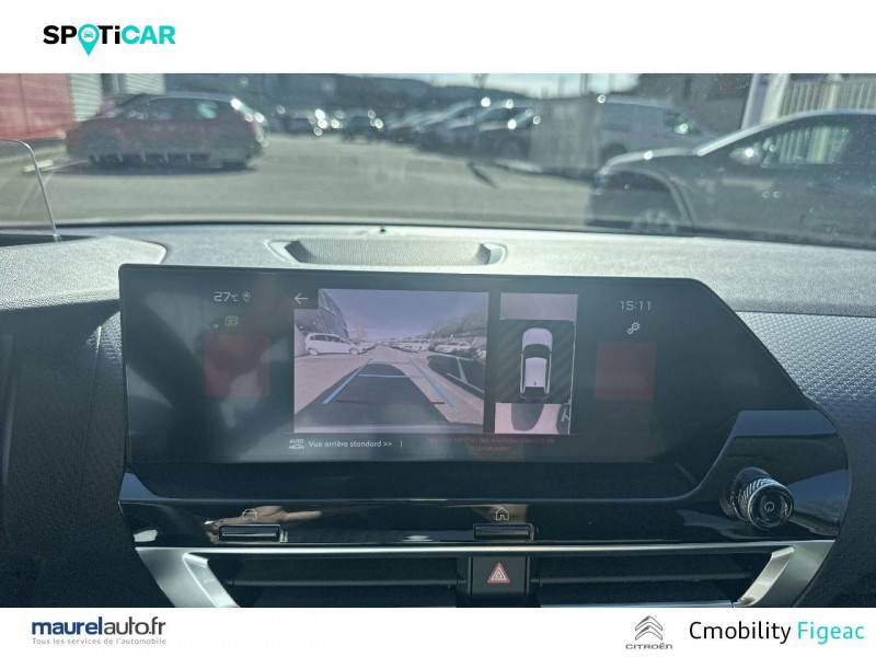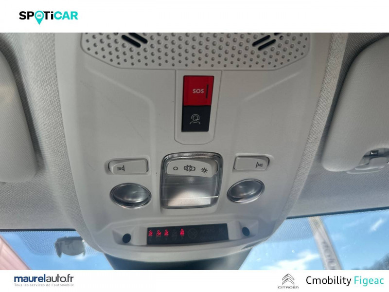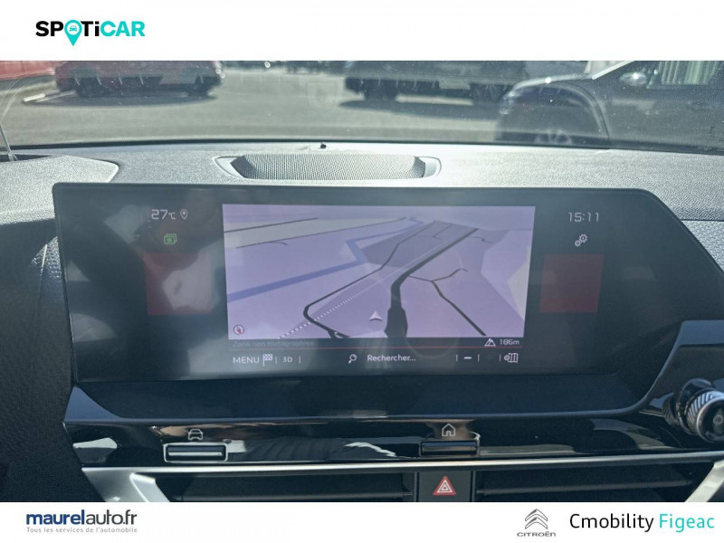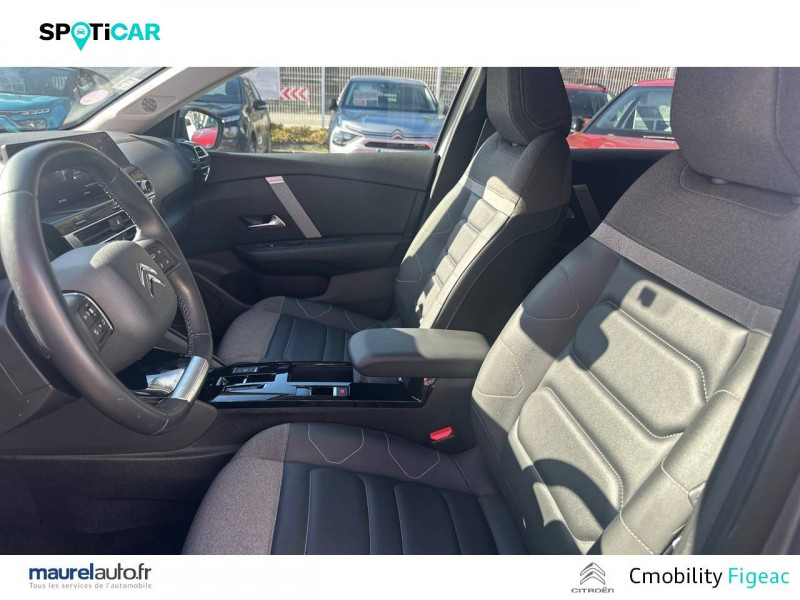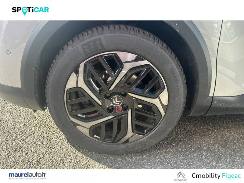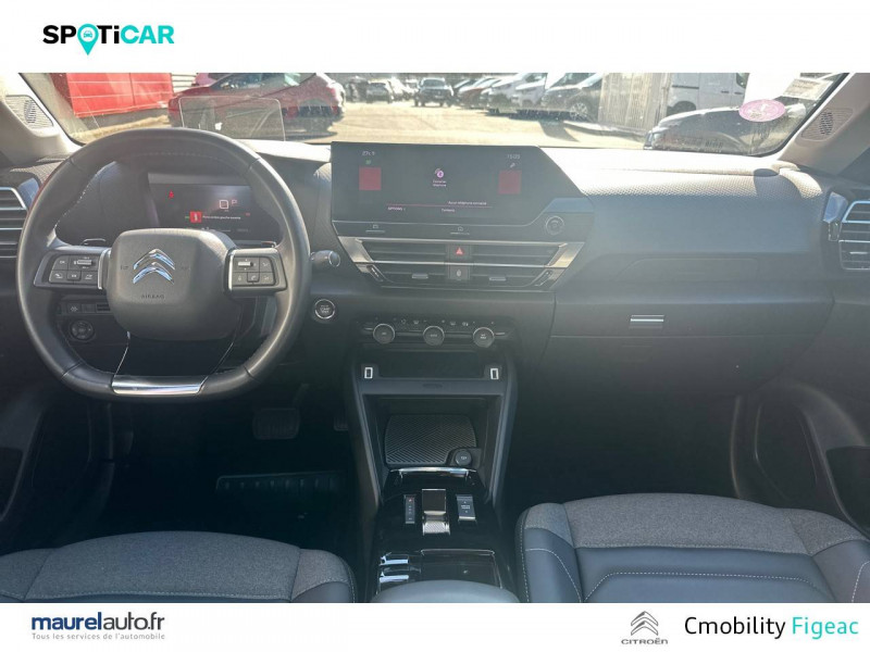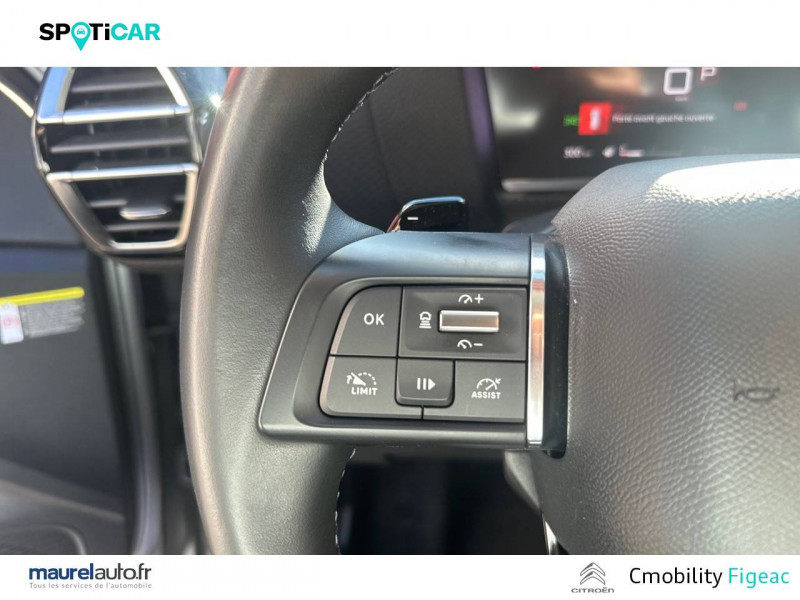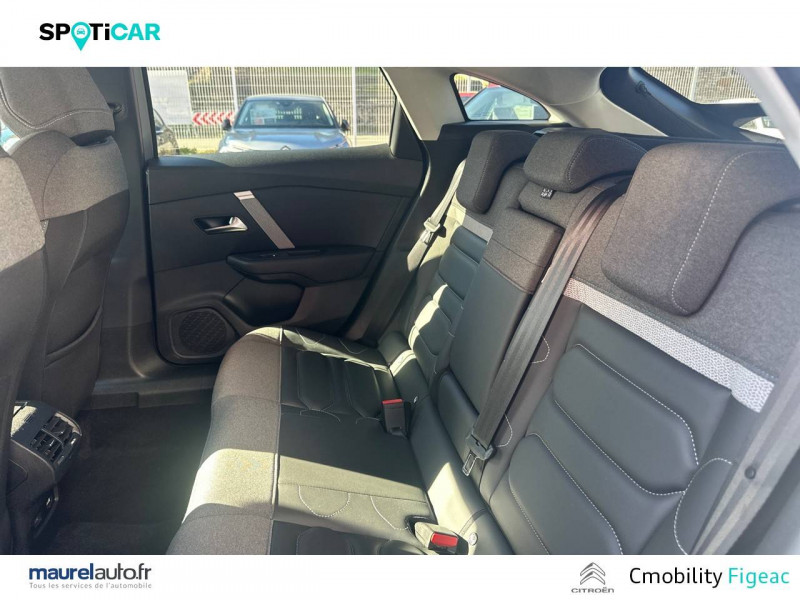 1 prise USB en rang 2 (type A) / 2 prises USB au rang 1 (1 type C + 1 type A) / ABS avec REF, AFU et ESP / Accès et démarrage mains libres Proximity 2 Télécommandes 3 boutons (verrouillage, coffre et déverrouillage). / Aérateurs centraux en rang 2 / Caméra de recul avec Top Rear Vision / Citroën Connect Box avec Pack SOS et assistance inclus / Citroën Connect Nav numérique sur tablette tactile 10'': comprend le système de navigation TomTom, la reconnaissance vocale et durant 3 ans les services Connect Nav (inclut les services « Zones de danger », « Info Trafic », « Stations-service », « Parkings », « Météo » et « Recherche locale ») / Citroën Connect Radio numérique sur tablette tactile 10" / Combiné numérique couleur avec rétro-éclairage / Connect Play : Mirror Screen / Console centrale haute avec rangements et accoudoir / Détection de sous-gonflage / Ecran tactile 5" noir&blanc / Elargisseurs d'aile et bas de caisse Noir Mat / Essuie-vitre AV automatique (capteur de pluie) / Frein de stationnement électrique automatique / Garnissage textile effet cuir Noir/Tissu Gris Ambiance Metropolitan Grey + Sièges Advanced Comfort / Jantes alliage 18" AEROBLADE Dark / Jupe AR Noir Brilliant / Kit de dépannage provisoire de pneumatiques / Pack Color Gris Texturé / Pack Drive Assist Aide au stationnement AV et latéral, Commutation automatique des feux de route, Régulateur de vitesse adaptatif avec fonction Stop & Go,Système de surveillance d'angle mort / Pack Safety 2 / Pack Safety - Active Safety Brake - Alerte active de Franchissement Involontaire de Ligne - Alerte Attention Conducteur - Alerte Risque Collision - Coffee Break Alert - Reconnaissance des panneaux de vitesse et recommandation - Régulateur-limiteur de vitesse - Témoin de non-bouclage des ceintures de sécurité conducteur et passagers / Pack Style Jonc chromé sur les lécheurs de vitres latérales,Vitres et lunette AR surteintées / Plancher de coffre à 2 positions / Poches aumônières au dos des sièges AV / Poignées de portes extérieures couleur caisse / Prise 12 V en rang 1 / Projecteurs antibrouillard LED avec éclairage statique d'intersection / Projecteurs LED avec signature lumineuse en V / Rétroviseur intérieur électrochrome / Siège conducteur avec réglage lombaire et accoudoir / Smart Pad Support Citroen / Suspensions avec Butées Hydrauliques Progressives / Système audio numérique (DAB) MP3 6 HP / Tiroir de planche de bord / Volant cuir pleine fleur