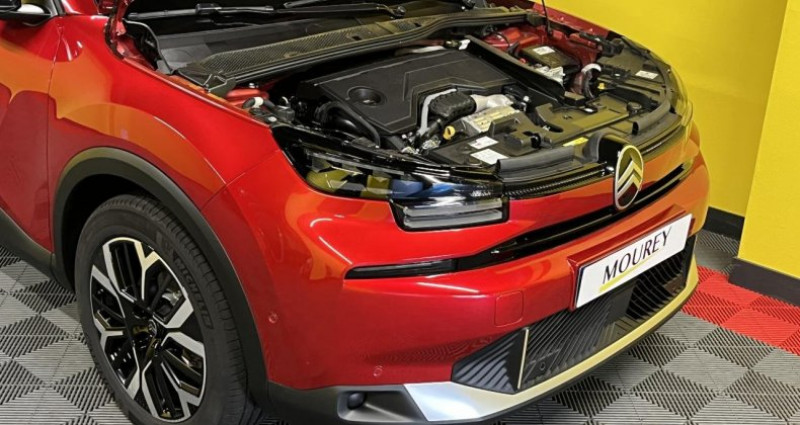======= OPTIONS ======= Peinture spéciale Rouge Elixir ======= EQUIPEMENTS DE SERIE ======= ABS avec répartiteur électronique de freinage (REF) et aide au freinage d'urgence (AFU) Aérateurs centraux pour les passagers arrière Accès et démarrage mains libres Proximity Aide au démarrage en côte Aide au stationnement arrière Aide au stationnement avant Aide au stationnement latéral Airbags frontaux, latéraux avant et rideaux Ambiance Métropolitan Grey Apple CarPlay et Android Auto (les deux sans fil) Banquette arrière fractionnable 2 3 - 1 3 Boîtier télématique : Appel d urgence et Citroën Assistance Boitiers de rétroviseurs extérieurs noir brillant Canules d'échappement chromées Clignotants impulsionnels Climatisation automatique bi-zone Color Clips Gold Satin Commandes système audio et régulateur de vitesses au volant Condamnation automatique du coffre et des portes en roulant Condamnation centralisée avec plip Console centrale haute avec rangement fermé, 2 porte-gobelets et accoudoir coulissant Contrôle dynamique de stabilité (ESP) Détection de sous-gonflage des pneumatiques Direction à assistance électrique variable Eclairage d'accueil et d'accompagnement Elargisseurs d'ailes et bas de caisse noir mat Essuie-glace à déclenchement automatique Feux arrière avec signature lumineuse à LED Feux de jour avec signature LED Fixations ISOFIX sur sièges latéraux arrière Frein de stationnement électrique automatique Jantes alliage 18'' AMBER Diamantées Jupe arrière en Noir Brillant Kit mains libres Bluetooth Lécheurs de vitres noirs Pack Drive Assist Pack Navigation Connectée Pack Safety Palettes de changement de rapports au volant Pare-soleil conducteur et passager avec miroir occultable Phares à LED Plafonniers avant et arrière Plancher de coffre à 2 niveaux Poignées de portes extérieures couleur caisse Prise 12V à l'avant Prise USB-A en rang 1 Prise USB-A en rang 2 Prise USB-C en rang 1 (pour fonction Mirror Screen) Rétroviseur intérieur électrochrome Rétroviseurs extérieurs réglables électriquement et dégivrants Rétroviseurs extérieurs rabattables électriquement et éclairage d'accompagnement Sécurité enfants manuelle Sabot avant Silver Chrome Satin Services Connect Plus Siège conducteur avec réglage lombaire Siège conducteur réglable en hauteur Siège passager réglable en hauteur Surtapis aux places avant et arrière Suspension Citroën Advanced Comfort Système audio numérique (DAB) MP3 6 HP Vitres avant et arrière électriques séquentielles Vitres latérales et lunette arrière surteintées Volant cuir pleine fleur Volant réglable en hauteur et en profondeur Nb. Vitesses : 6 Conso Mixte : l/100