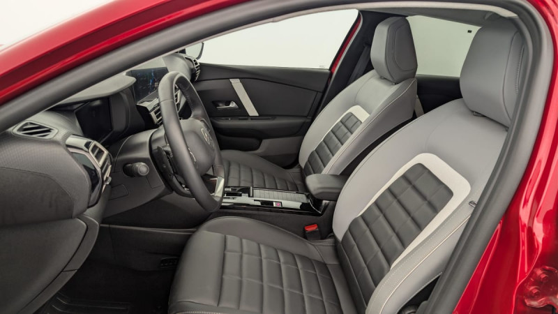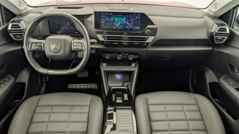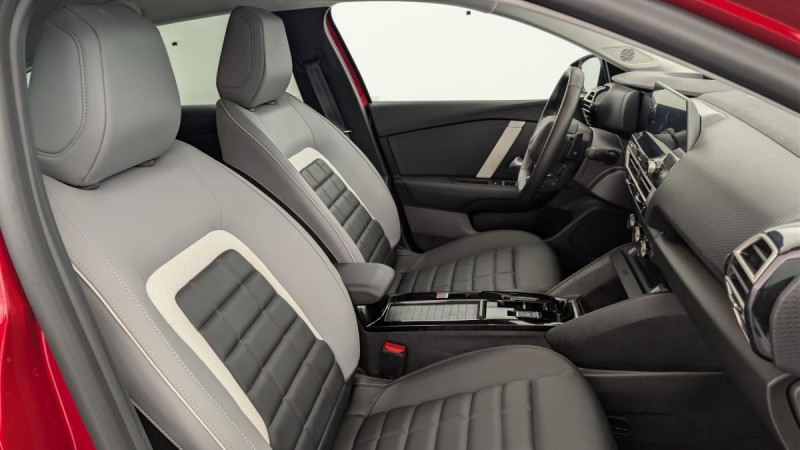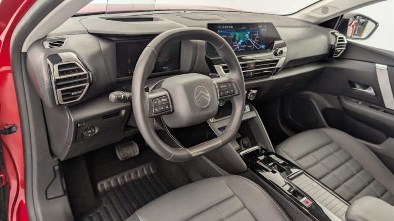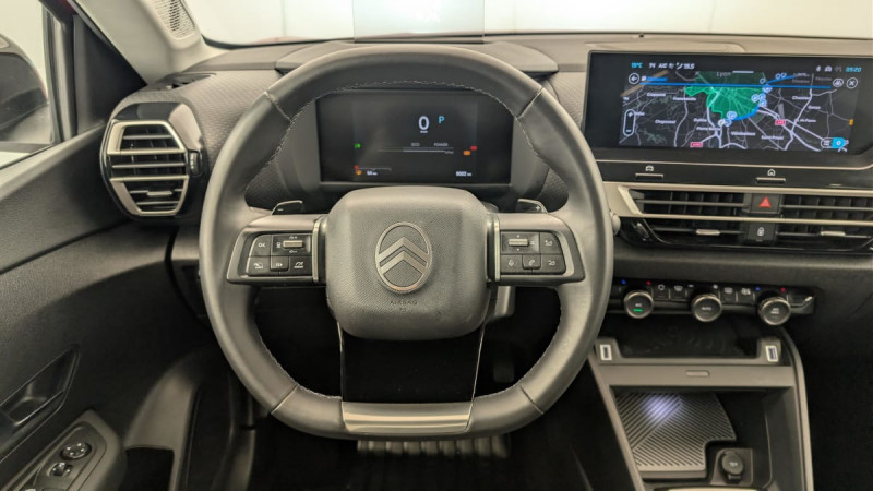 Détection de sous-gonflage / Volant cuir pleine fleur / Elargisseurs d'aile et bas de caisse Noir Mat / Console centrale haute avec rangements et accoudoir / Accès et démarrage mains libres Proximity 2 Télécommandes 3 boutons (verrouillage, coffre et déverrouillage) / Plancher de coffre à 2 positions / Aérateurs centraux en rang 2 / ABS + AFU + ESP + REF / Poche aumônière au dos des sièges AV / Suspension Citroën Advanced Comfort / Siège conducteur avec réglage lombaire / Eclairage d'accompagnement sous les rétroviseurs extérieurs / Ecran central 10" tactile: - Système audio numérique (DAB) 6 HPs - Apple CarPlay et Android Auto sans fil - Reconnaissance vocale - Kit mains libres Bluetooth - Boîtier télématique : Appel d'urgence / Jantes alliage 18" AMBER Diamantées / Feux diurnes à LED avec signature lumineuse / Feux AR à LED avec signature lumineuse / Pack Safety : Allumage automatique des feux de croisement Régulateur-limiteur de vitesse Coffee Break Alert Alerte attention conducteur Alerte Risque Collision Alerte active de Franchissement Involontaire de ligne Reconnaissance des panneaux de vitesse et recommandation Témoin de non-bouclage des ceintures de sécurité conducteur et passager Active Safety Brake (freinage automatique d'urgence) / Pack Drive Assist : Commutation automatique des feux de route Système de surveillance d'angle mort Active Safety Brake 2.0 Fonctionne à l'aide d'un Radar de 7 à 140 km/h, même de nuit et détecte les cyclistes Reconnaissance étendue des panneaux et recommandation de vitesse Régulateur de vitesse adaptatif avec fonction Stop & Go (dispositif ajustant la vitesse en fonction du véhicule précédent) / Garnissage Toile enduite Noir/Toile enduite Gris Clair Ambiance Metropolitan Grey + Sièges Advanced Comfort / Rétroviseur intérieur électrochrome / 2 prises USB au rang 1 (1 type C + 1 type A) + 1 prise USB en rang 2 (type A) / Pack Navigation Connectée : Top Rear Vision de la caméra de recul Navigation 3D Connectée sur écran central 10'' tactile - Système de navigation TomTom - Reconnaissance vocale avec langage naturel - Interface personnalisable avec Widgets Interface personnalisable avec Widgets Combiné numérique couleur 7" TFT / Frein de stationnement électrique automatique / Poignées de portes extérieures couleur caisse / Kit de dépannage provisoire de pneumatiques / / Véhicules équivalents: 308 - Mégane - Golf