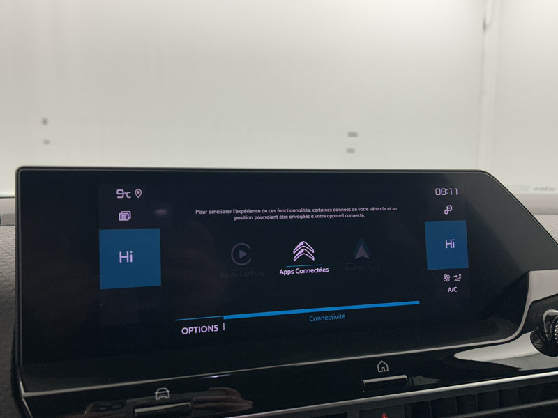 1 prise USB en rang 2 (type A) / 2 prises USB au rang 1 (1 type C + 1 type A) / ABS avec REF, AFU et ESP / Accès et démarrage mains libres Proximity / Aérateurs centraux en rang 2 / Combiné numérique couleur avec rétro-éclairage / Commutation automatique des feux de route / Console centrale haute avec rangements et accoudoir / Détection de sous-gonflage / Elargisseurs d'aile et bas de caisse Noir Mat / Essuie-vitre AV automatique (capteur de pluie) / Frein de stationnement électrique automatique / Garnissage textile effet cuir Noir/Tissu Gris Ambiance Metropolitan Grey + Sièges Advanced Comfort / Jantes alliage 18" AEROBLADE Diamantées / Jupe AR Noir Brilliant / Kit de dépannage provisoire de pneumatiques / My Citroën Assist: Citroën Connect Box avec Pack SOS et assistance inclus / My Citroën Drive": Citroën Connect Nav numérique sur tablette tactile 10'' comprend le système de navigation TomTom, la reconnaissance vocale et durant 3 ans les services Connect Nav (inclut les services « Zones de danger », « Info Trafic », « Stations-service », « Parkings », « Météo » et « Recherche locale »). / My Citroën Play - Mirror Screen sans fils, compatible Android Auto et Apple CarPlay, Système audio numérique (DAB) MP3 6 HP,Tablette tactile 10" / Plancher de coffre à 2 positions / Poche aumônière au dos des sièges AV / Poignées de portes extérieures couleur caisse / Prise 12 V en rang 1 / Projecteurs antibrouillard LED avec éclairage statique d'intersection / Projecteurs LED avec signature lumineuse en V / Rétroviseur intérieur électrochrome / Siège conducteur avec réglage lombaire et accoudoir / Sièges Advanced Comfort / Smart Pad Support Citroen / Suspension Citroën Advanced Comfort / Système audio numérique (DAB) MP3 6 HP / Tiroir de planche de bord / Volant cuir pleine fleur / Pack Color Glossy Silver: Inserts autour des projecteurs antibrouillard et sur les protections de bas de caisse / Pack Drive Assist Aide au stationnement AV et latéral, Commutation automatique des feux de route, Régulateur de vitesse adaptatif avec fonction Stop & Go,Système de surveillance d'angle mort: Système de surveillance d'angle mort, Aide au stationnement AV, Aide au stationnement latéral, Régulateur de vitesse adaptatif avec fonction Stop&Go / Pack Safety 2: Reconnaissance étendue des panneaux, Active Safety Brake 2.0 / Pack Safety - Active Safety Brake - Alerte active de Franchissement Involontaire de Ligne - Alerte Attention Conducteur - Alerte Risque Collision - Coffee Break Alert - Reconnaissance des panneaux de vitesse et recommandation - Régulateur-limiteur de vitesse - Témoin de non-bouclage des ceintures de sécurité conducteur et passagers: Régulateur-limiteur de vitesse, Coffee Break Alert, Alerte attention conducteur, Alerte Risque Collision, Reconnaissance des panneaux de vitesse, Témoin de non-bouclage des ceintures de sécurité conducteur et passagers, Alerte active de Franchissement Involontaire de ligne, Active Safety Brake, Post Collision Safety Brake / Pack Style: Jonc chromé sur les lécheurs de vitres latérales, Vitres et lunette AR surteintées / / Véhicules équivalents: 308 - Mégane - Golf