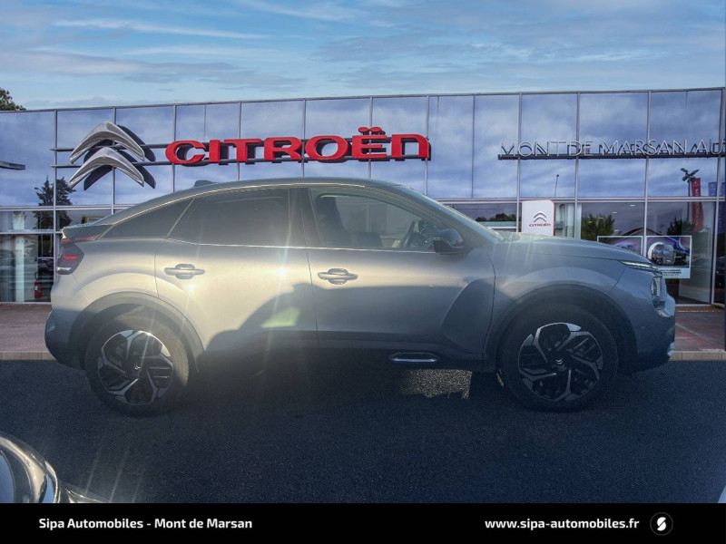 1 prise USB en rang 2 (type A) / 2 prises USB au rang 1 (1 type C + 1 type A) / ABS avec REF, AFU et ESP / Accès et démarrage mains libres Proximity / Aérateurs centraux en rang 2 / Combiné numérique couleur avec rétro-éclairage / Commutation automatique des feux de route / Console centrale haute avec rangements et accoudoir / Détection de sous-gonflage / Eclairage d'accompagnement sous les rétroviseurs extérieurs / Elargisseurs d'aile et bas de caisse Noir Mat / Essuie-vitre AV automatique (capteur de pluie) / Frein de stationnement électrique automatique / Garnissage textile effet cuir Noir/Tissu Gris Ambiance Metropolitan Grey + Sièges Advanced Comfort / Jantes alliage 18" AEROBLADE Diamantées / Jupe AR Noir Brilliant / Kit de dépannage provisoire de pneumatiques / My Citroën Assist : Citroën Connect Box avec Pack SOS et assistance inclus / My Citroën Drive Plus: navigation sur tablette tactile 10'' comprend le système de navigation 3D TomTom, la reconnaissance vocale avec langage naturel, l'interface personnalisable, et durant 3 ans les services My Citroën Drive Plus (inclut les services «Zones de danger», «Info Trafic», «Stations-service», «Parkings, «Météo» et «Recherche locale») / My Citroën Play - Mirror Screen sans fils, compatible Android Auto et Apple CarPlay, Système audio numérique (DAB) MP3 6 HP,Tablette tactile 10" / Pack Color Glossy Silver / Pack Drive Assist Aide au stationnement AV et latéral, Commutation automatique des feux de route, Régulateur de vitesse adaptatif avec fonction Stop & Go,Système de surveillance d'angle mort / Pack Safety 2 / Pack Safety - Active Safety Brake - Alerte active de Franchissement Involontaire de Ligne - Alerte Attention Conducteur - Alerte Risque Collision - Coffee Break Alert - Reconnaissance des panneaux de vitesse et recommandation - Régulateur-limiteur de vitesse - Témoin de non-bouclage des ceintures de sécurité conducteur et passagers / Pack Style Jonc chromé sur les lécheurs de vitres latérales,Vitres et lunette AR surteintées / Plancher de coffre à 2 positions / Poche aumônière au dos des sièges AV / Poignées de portes extérieures couleur caisse / Prise 12 V en rang 1 / Projecteurs antibrouillard LED avec éclairage statique d'intersection / Projecteurs LED avec signature lumineuse en V / Rétroviseur intérieur électrochrome / Siège passager avec réglage lombaire / Sièges Advanced Comfort / Smart Pad Support Citroen / Suspension Citroën Advanced Comfort / Système audio numérique (DAB) MP3 6 HP / Tiroir de planche de bord / Top Rear Vision (caméra de recul avec visualisation 180° sur tablette) / Volant cuir pleine fleur
