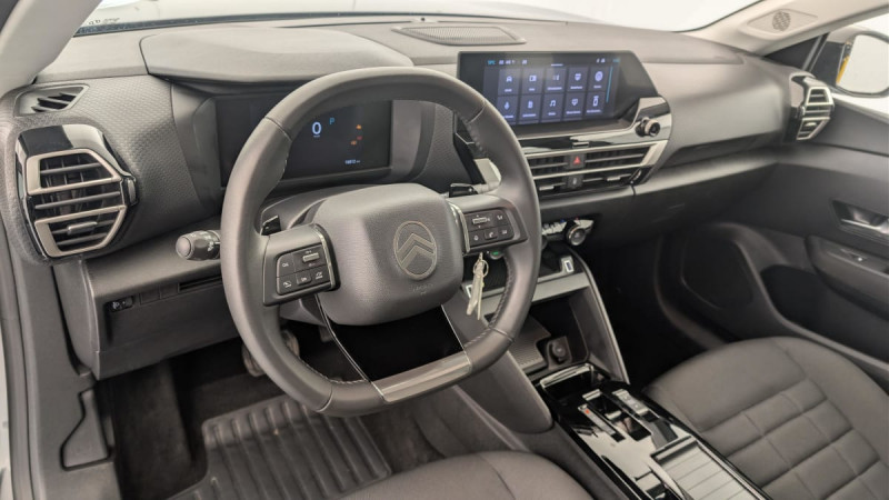 Détection de sous-gonflage / Elargisseurs d'aile et bas de caisse Noir Mat / Sécurité enfants mécanique / Clignotants impulsionnels / Enjoliveurs 18" AEROTECH / Aérateurs centraux en rang 2 / ABS + AFU + ESP + REF / Poche aumônière au dos des sièges AV / Suspension Citroën Advanced Comfort / Direction à assistance électrique variable / Siège conducteur avec réglage lombaire / Eclairage d'accueil et d'accompagnement / Pare-soleil avec miroir occultable côtés conducteur et passager / Combiné numérique couleur 5.5" TFT / Ecran central 10" tactile: - Système audio numérique (DAB) 6 HPs - Apple CarPlay et Android Auto sans fil - Reconnaissance vocale - Kit mains libres Bluetooth / Condamnation centralisée avec Plip et condamnation automatique du coffre et des portes en roulant / Console centrale haute avec rangements fermés et 2 porte-gobelets et accoudoir coulissant / Fixations ISOFIX sur sièges latéraux AR (3 points d'encrage avec Top TetherTether) / Plafonniers AV et AR à lampes / Commandes au volant du système audio et du régulateur-limiteur de vitesse / Feux diurnes à LED avec signature lumineuse / Feux AR à LED avec signature lumineuse / Pack Safety - Active Safety Brake (fonctionne de 30 à 80 km/h et détecte les piétons et les cyclistes) - Alerte active de Franchissement Involontaire de Ligne - Alerte Attention Conducteur - Alerte Risque Collision - Allumage automatique des feux de croisement - Coffee Break Alert - Reconnaissance des panneaux de vitesse et recommandation - Régulateur-limiteur de vitesse - Témoin de non-bouclage des ceintures de sécurité conducteur et passagers : Allumage automatique des feux de croisement Régulateur-limiteur de vitesse Coffee Break Alert Alerte attention conducteur Alerte Risque Collision Alerte active de Franchissement Involontaire de ligne Reconnaissance des panneaux de vitesse et recommandation Témoin de non-bouclage des ceintures de sécurité conducteur et passager Active Safety Brake (freinage automatique d'urgence) / Garnissage Tissu Hello Noir/Toile enduite Gris Ambiance Urban Grey + Sièges Advanced Comfort / Accoudoir en Tissu Brasilia - Noir Mistral / 2 prises USB au rang 1 (1 type C + 1 type A) + 1 prise USB en rang 2 (type A) / Essuie-vitre AV automatique (capteur de pluie) / Frein de stationnement électrique automatique / Poignées de portes extérieures couleur caisse / Kit de dépannage provisoire de pneumatiques / / Véhicules équivalents: 308 - Mégane - Golf