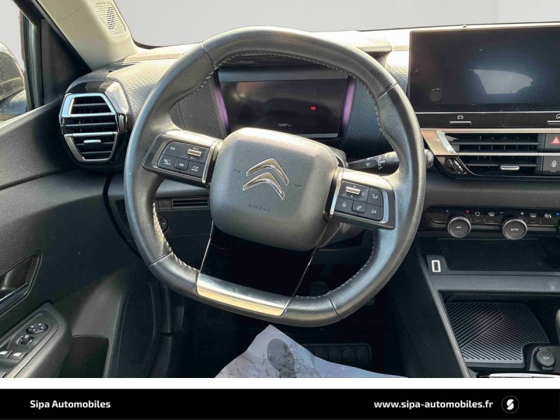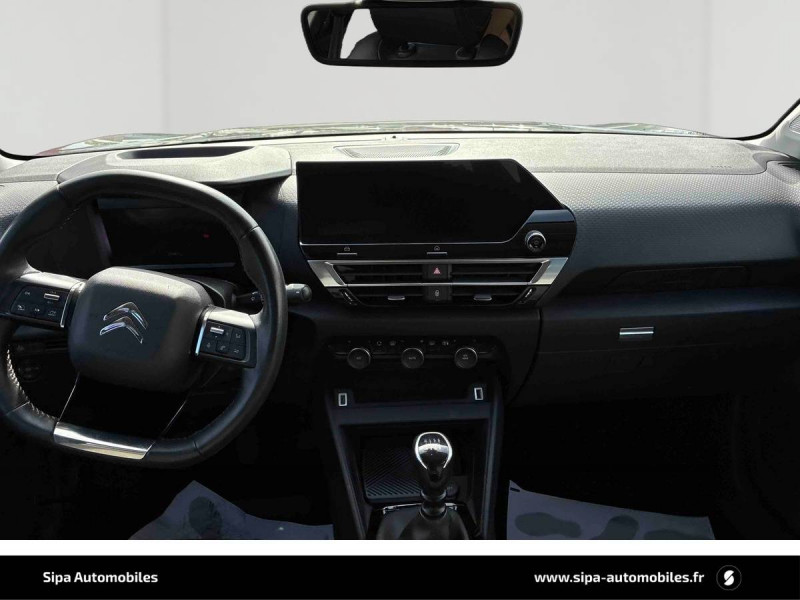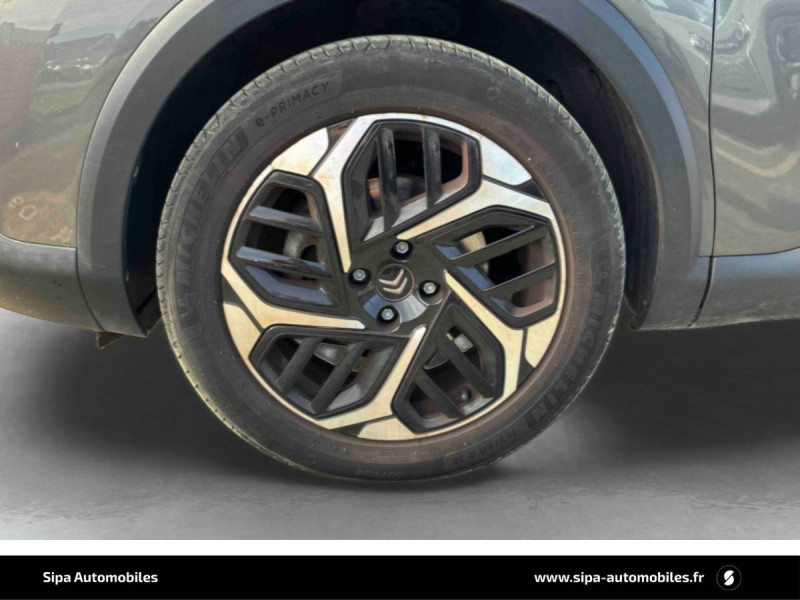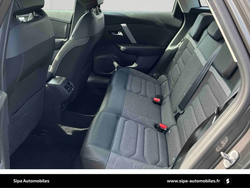 1 prise USB en rang 2 (type A) / 2 prises USB au rang 1 (1 type C + 1 type A) / ABS avec REF, AFU et ESP / Aérateurs centraux en rang 2 / Citroën Connect Radio numérique sur tablette tactile 10" / Combiné numérique couleur avec rétro-éclairage / Connect Assist : Citroën Connect Box avec Pack SOS et assistance inclus / Connect Nav : Citroën Connect Nav numérique sur tablette tactile 10'' comprend le système de navigation TomTom, la reconnaissance vocale et durant 3 ans les services Connect Nav (inclut les services « Zones de danger », « Info Trafic », « Stations-service », « Parkings », « Météo » et « Recherche locale »). / Connect Play : Mirror Screen / Console centrale haute avec rangements et accoudoir / Détection de sous-gonflage / Elargisseurs d'aile et bas de caisse Noir Mat / Essuie-vitre AV automatique (capteur de pluie) / Frein de stationnement électrique automatique / Garnissage tissu Chevrons Gris/Textile effet cuir Noir Ambiance Urban Grey + Sièges Advanced Comfort / Jantes alliage 18" AEROBLADE Gris Anthra / Jupe AR Noir Brilliant / Kit de dépannage provisoire de pneumatiques / Pack Color Glossy Black / Pack Safety - Active Safety Brake - Alerte active de Franchissement Involontaire de Ligne - Alerte Attention Conducteur - Alerte Risque Collision - Coffee Break Alert - Reconnaissance des panneaux de vitesse et recommandation - Régulateur-limiteur de vitesse - Témoin de non-bouclage des ceintures de sécurité conducteur et passagers / Plancher de coffre à 2 positions / Poche aumônière au dos des sièges AV / Poignées de portes extérieures couleur caisse / Prise 12 V en rang 1 / Projecteurs antibrouillard LED avec éclairage statique d'intersection / Projecteurs LED avec signature lumineuse en V / Siège conducteur avec réglage lombaire et accoudoir / Suspension Citroën Advanced Comfort / Système audio numérique (DAB) MP3 6 HP / Tiroir de planche de bord