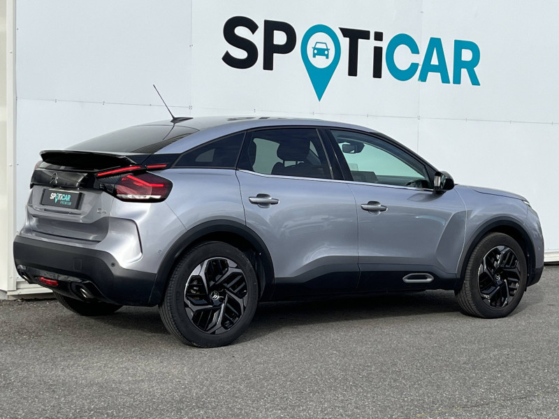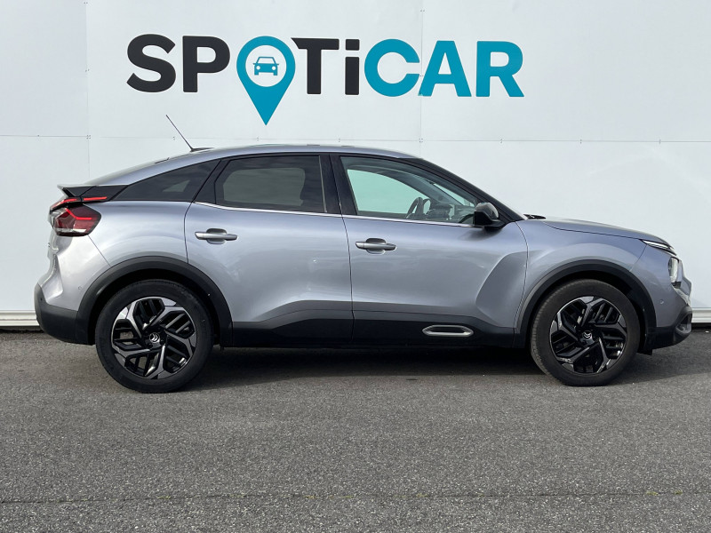 1 prise USB en rang 2 (type A) / 2 prises USB au rang 1 (1 type C + 1 type A) / ABS avec REF, AFU et ESP / Accès et démarrage mains libres Proximity / Aérateurs centraux en rang 2 / Combiné numérique couleur avec rétro-éclairage / Commutation automatique des feux de route / Console centrale haute avec rangements et accoudoir / Détection de sous-gonflage / Elargisseurs d'aile et bas de caisse Noir Mat / Essuie-vitre AV automatique (capteur de pluie) / Frein de stationnement électrique automatique / Garnissage textile effet cuir Noir/Tissu Gris Ambiance Metropolitan Grey + Sièges Advanced Comfort / Jantes alliage 18" AEROBLADE Diamantées / Jupe AR Noir Brilliant / Kit de dépannage provisoire de pneumatiques / My Citroën Assist: Citroën Connect Box avec Pack SOS et assistance inclus / My Citroën Drive": Citroën Connect Nav numérique sur tablette tactile 10'' comprend le système de navigation TomTom, la reconnaissance vocale et durant 3 ans les services Connect Nav (inclut les services « Zones de danger », « Info Trafic », « Stations-service », « Parkings », « Météo » et « Recherche locale »). / My Citroën Play - Mirror Screen sans fils, compatible Android Auto et Apple CarPlay, Système audio numérique (DAB) MP3 6 HP,Tablette tactile 10" / Pack Color Glossy Silver / Pack Drive Assist Aide au stationnement AV et latéral, Commutation automatique des feux de route, Régulateur de vitesse adaptatif avec fonction Stop & Go,Système de surveillance d'angle mort / Pack Safety 2 / Pack Safety - Active Safety Brake - Alerte active de Franchissement Involontaire de Ligne - Alerte Attention Conducteur - Alerte Risque Collision - Coffee Break Alert - Reconnaissance des panneaux de vitesse et recommandation - Régulateur-limiteur de vitesse - Témoin de non-bouclage des ceintures de sécurité conducteur et passagers / Plancher de coffre à 2 positions / Poche aumônière au dos des sièges AV / Poignées de portes extérieures couleur caisse / Prise 12 V en rang 1 / Projecteurs antibrouillard LED avec éclairage statique d'intersection / Projecteurs LED avec signature lumineuse en V / Rétroviseur intérieur électrochrome / Siège conducteur avec réglage lombaire et accoudoir / Sièges Advanced Comfort / Smart Pad Support Citroen / Suspension Citroën Advanced Comfort / Système audio numérique (DAB) MP3 6 HP / Tiroir de planche de bord / Volant cuir pleine fleur