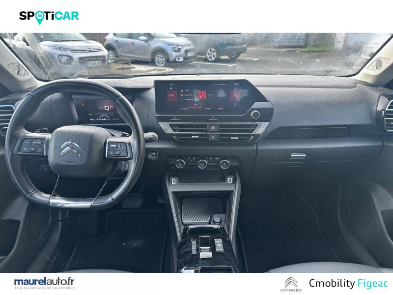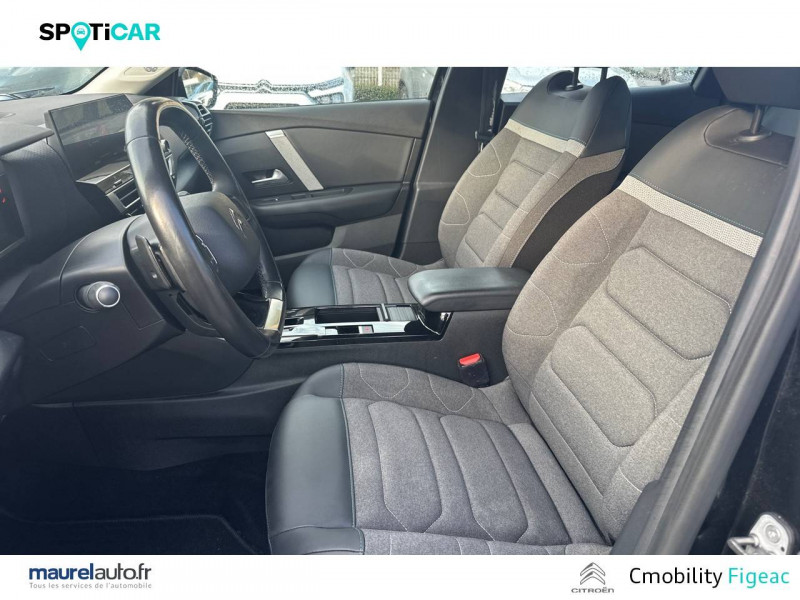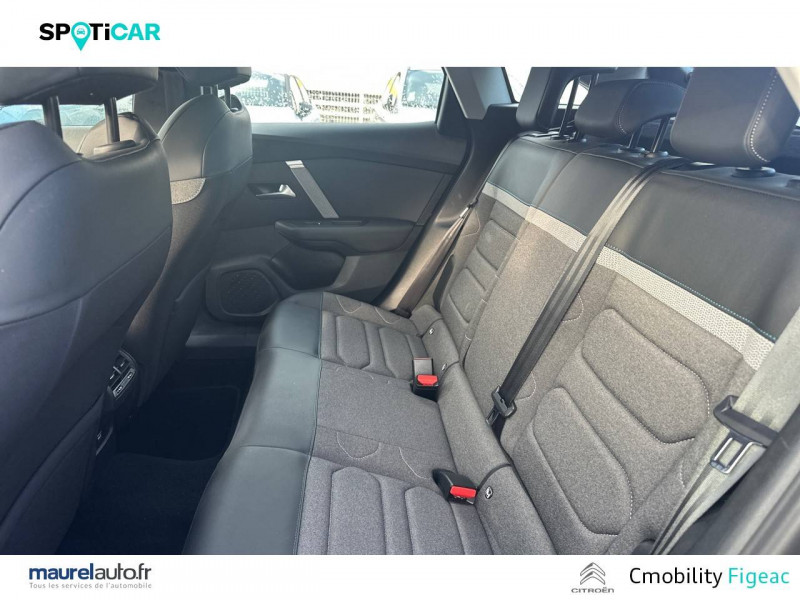 Citroën Connect Box avec Pack SOS et assistance inclus / Citroën Connect Nav numérique sur tablette tactile 10'': comprend le système de navigation TomTom, la reconnaissance vocale et durant 3 ans les services Connect Nav (inclut les services « Zones de danger », « Info Trafic », « Stations-service », « Parkings », « Météo » et « Recherche locale ») / Essuie-vitre AV automatique (capteur de pluie) / Frein de stationnement électrique automatique / Garnissage tissu Chevrons Gris/Textile effet cuir Noir Ambiance Urban Grey + Sièges Advanced Comfort / Jantes alliage 18" AEROBLADE Diamantées / Pack Color Glossy Black / Pack Drive Assist Aide au stationnement AV et latéral, Commutation automatique des feux de route, Régulateur de vitesse adaptatif avec fonction Stop & Go,Système de surveillance d'angle mort / Pack Safety - Active Safety Brake - Alerte active de Franchissement Involontaire de Ligne - Alerte Attention Conducteur - Alerte Risque Collision - Coffee Break Alert - Reconnaissance des panneaux de vitesse et recommandation - Régulateur-limiteur de vitesse - Témoin de non-bouclage des ceintures de sécurité conducteur et passagers / Pack Safety 2 / Projecteurs antibrouillard LED avec éclairage statique d'intersection / Projecteurs LED avec signature lumineuse en V / Volant cuir pleine fleur / 1 prise USB en rang 2 (type A) / 2 prises USB au rang 1 (1 type C + 1 type A) / ABS avec REF, AFU et ESP / Accès et démarrage mains libres Proximity 2 Télécommandes 3 boutons (verrouillage, coffre et déverrouillage). / Aérateurs centraux en rang 2 / Caméra de recul avec Top Rear Vision / Citroën Connect Radio numérique sur tablette tactile 10" / Combiné numérique couleur avec rétro-éclairage / Connect Play : Mirror Screen / Console centrale haute avec rangements et accoudoir / Détection de sous-gonflage / Elargisseurs d'aile et bas de caisse Noir Mat / Jupe AR Noir Brilliant / Kit de dépannage provisoire de pneumatiques / Plancher de coffre à 2 positions / Poches aumônières au dos des sièges AV / Poignées de portes extérieures couleur caisse / Prise 12 V en rang 1 / Rétroviseur intérieur électrochrome / Siège conducteur avec réglage lombaire et accoudoir / Smart Pad Support Citroen / Suspensions avec Butées Hydrauliques Progressives / Système audio numérique (DAB) MP3 6 HP / Tiroir de planche de bord