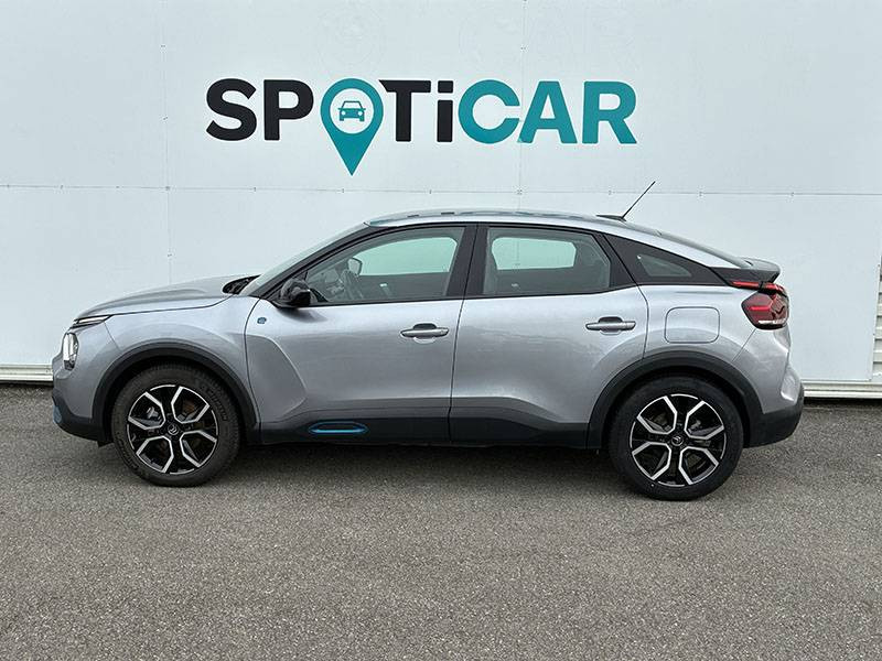 2 prises USB au rang 2 (1 type C + 1 type A) / ABS avec REF, AFU et ESP / Aérateurs centraux en rang 2 / Avertisseur sonore piéton / Câble de recharge Mode 2 renforcé 16A (pour prise type Green Up) / Caméra de recul avec Top Rear Vision / Chargeur embarqué 3,4 kW monophasé / Citroën Connect Box avec Pack SOS et assistance inclus / Citroën Connect Nav numérique sur tablette tactile 10'': comprend le système de navigation TomTom, la reconnaissance vocale et durant 3 ans les services Connect Nav (inclut les services « Zones de danger », « Info Trafic », « Stations-service », « Parkings », « Météo » et « Recherche locale ») / Citroën Connect Radio numérique sur tablette tactile 10" / Combiné numérique couleur avec rétro-éclairage / Connect Play : Mirror Screen / Console centrale haute avec rangements et accoudoir / Décor Bleu sur les panneaux intérieurs de porte / Détection de sous-gonflage / Ecran tactile 5" noir&blanc / Elargisseurs d'aile et bas de caisse Noir Mat / e-Services Charge My Car: comprend les services "Trip Planner" et "Charging Pass" pendant 1 an / Essuie-vitre AV automatique (capteur de pluie) / Frein de stationnement électrique automatique / Garnissage tissu Chevrons Gris/Textile effet cuir Noir Ambiance Urban Grey + Sièges Advanced Comfort / Jantes alliage 18" CROSSLIGHT Diamantées / Jupe AR Noir Brilliant / Kit de dépannage provisoire de pneumatiques / Pack Color Anodised Blue / Pack Safety 2 / Pack Safety - Active Safety Brake - Alerte active de Franchissement Involontaire de Ligne - Alerte Attention Conducteur - Alerte Risque Collision - Coffee Break Alert - Reconnaissance des panneaux de vitesse et recommandation - Régulateur-limiteur de vitesse - Témoin de non-bouclage des ceintures de sécurité conducteur et passagers / Plancher de coffre à 2 positions / Poches aumônières au dos des sièges AV / Poignées de portes extérieures couleur caisse / Préconditionnement thermique / Prise 12 V en rang 1 / Projecteurs antibrouillard LED avec éclairage statique d'intersection / Projecteurs LED avec signature lumineuse en V / Rétroviseur intérieur électrochrome / Siège conducteur avec réglage lombaire et accoudoir / Smart Pad Support Citroen / Surtapis AV et AR / Suspensions avec Butées Hydrauliques Progressives / Système audio numérique (DAB) MP3 6 HP / Tiroir de planche de bord