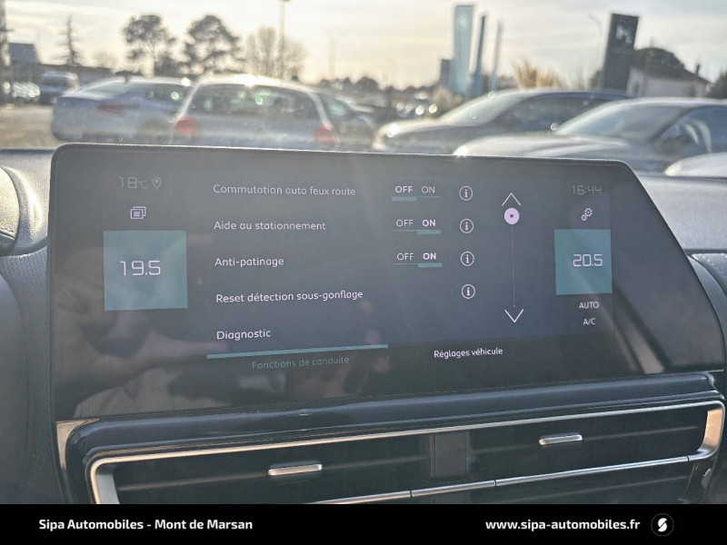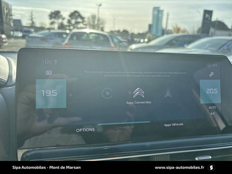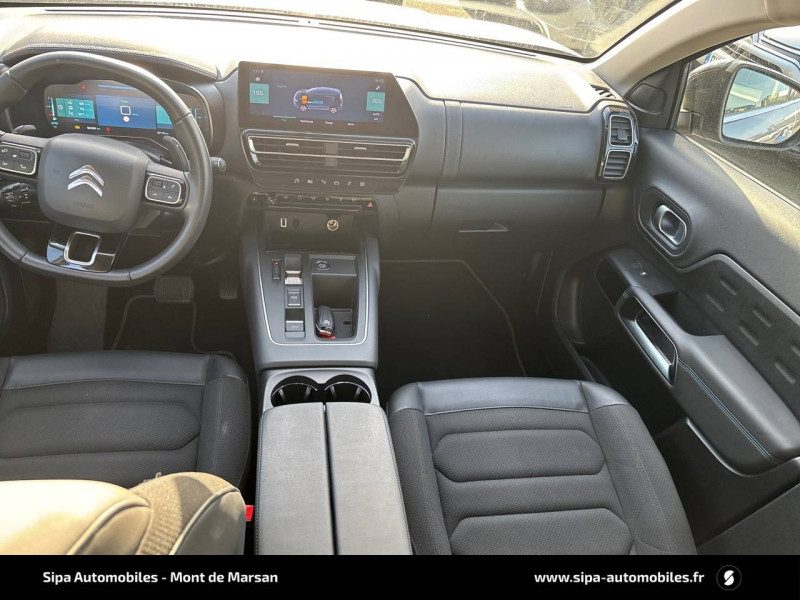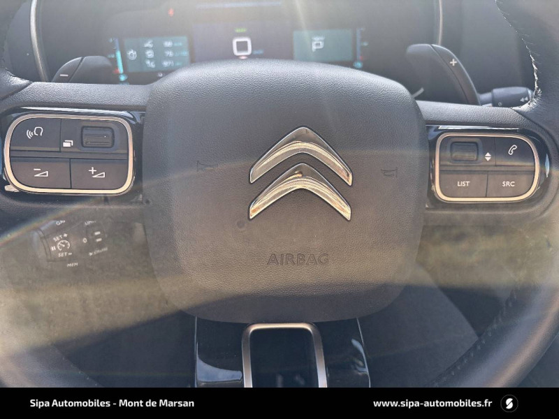 3 sièges AR indépendants, coulissants, inclinables et escamotables / ABS + AFU + ESP + REF / Accès et démarrage mains libres / Aide au stationnement AV + Caméra de recul avec Top Rear Vision Comprend les Projecteurs antibrouillard avec éclairage statique d'intersection. / Câble de recharge Mode 2, prise de charge T2/EF, longueur 6 mètres / Calandre supérieure Noir Brillant / Chargeur embarqué 3,7 kW / Combiné numérique 12,3" personnalisable / Détection de sous-gonflage / Elargisseurs d'aile et bas de caisse Noir Mat / Enjoliveurs de contour de vitres latérales chromés / Essuie-vitres AV automatique Magic Wash / Feux diurnes à LED avec clignotants à LED / Frein de stationnement électrique automatique / Garnissage Tissu SAO Noir/Tissu effet cuir Gris/Ambiance Wild Black avec Sièges Advanced Comfort / Inserts colorés Noir Brillant sur Airbump et bouclier AV / Jantes alliage 18" PULSAR Diamantées bi-ton / Kit de dépannage provisoire des pneumatiques / My Citroën Assist : Citroën Connect Box avec Pack SOS et assistance inclus / My Citroën Drive avec écran tactile 10" Comprend le système de navigation TomTom, la reconnaissance vocale et durant 3 ans les services Connect Nav / My Citroën Play Hybrid avec tablette tactile 10" / Pack Safety + / Pack Safety - Active Safety Brake - Alerte active de Franchissement Involontaire de Ligne - Alerte Attention Conducteur - Alerte Risque Collision - Coffee Break Alert - Reconnaissance des panneaux de vitesse et recommandation - Régulateur-limiteur de vitesse - Témoin de non-bouclage des ceintures de sécurité conducteur et passagers / Pare-chocs AR avec double canule chromée / Personnalisation extérieure C-Series : badges C-Series sur les ailes AV, inserts sur les Airbump et inserts sur le bouclier AV Bronze Anodisé. / Prises 12 V sur la console centrale et dans le coffre / Projecteurs antibrouillard avec éclairage statique d'intersection / Rétroviseur intérieur électrochrome / Sabots de protection Aluminium Brillant / Siège conducteur avec réglage lombaire / Sièges Advanced Comfort / Suspension Citroën Advanced Comfort / Vitres latérales AV feuilletées et acoustiques