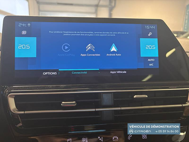 3 sièges AR indépendants, coulissants, inclinables et escamotables / ABS + AFU + ESP + REF / Boîtier télématique : Appel d'urgence et Citroën Assistance les services Connect ONE pendant une période de 10 ans / Câble de recharge Mode 2, prise de charge T2/EF, longueur 6 mètres / Calandre supérieure Noir Brillant / Caméra de recul avec Top Rear Vision / Chargeur embarqué 3,7 kW / Combiné numérique 12,3" personnalisable / Détection de sous-gonflage / Elargisseurs d'aile et bas de caisse Noir Mat / Enjoliveurs de contour de vitres latérales chromés / Essuie-vitres AV automatique Magic Wash / Feux diurnes à LED avec clignotants à LED / Frein de stationnement électrique automatique / Garnissage Tissu Bruneo chine/Toile enduite Noire/Ambiance Metropolitan Black avec Sièges Advanced Comfort / Jantes alliage 18" PULSAR Diamantées bi-ton / Kit de dépannage provisoire des pneumatiques / Navigation sur écran central 10" tactile Comprend le système de navigation TomTom, la reconnaissance vocale avec langage naturel, l'interface personnalisable, et les services Connect PLUS additionnels / Pack Color Noir Brillant Inserts colorés Noir Brillant sur Airbump et bouclier AV / Pack Safety + Active Safety Brake 2.0, Alerte de Franchissement Involontaire de Ligne, Coffee Break Alert, Reconnaissance étendue des panneaux et recommandation de vitesse, Régulateur-limiteur de vitesse, Système de surveillance d'angle mort / Prises 12 V sur la console centrale et dans le coffre / Rétroviseur intérieur électrochrome / Sabots de protection Aluminium Brillant / Services Connect PLUS pendant 12 mois / Siège conducteur avec réglage lombaire / Sièges Advanced Comfort / Suspension Citroën Advanced Comfort / Système audio numérique bi-tuner RDS MP3 (DAB)
