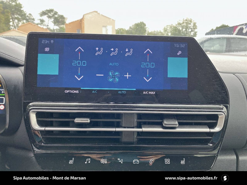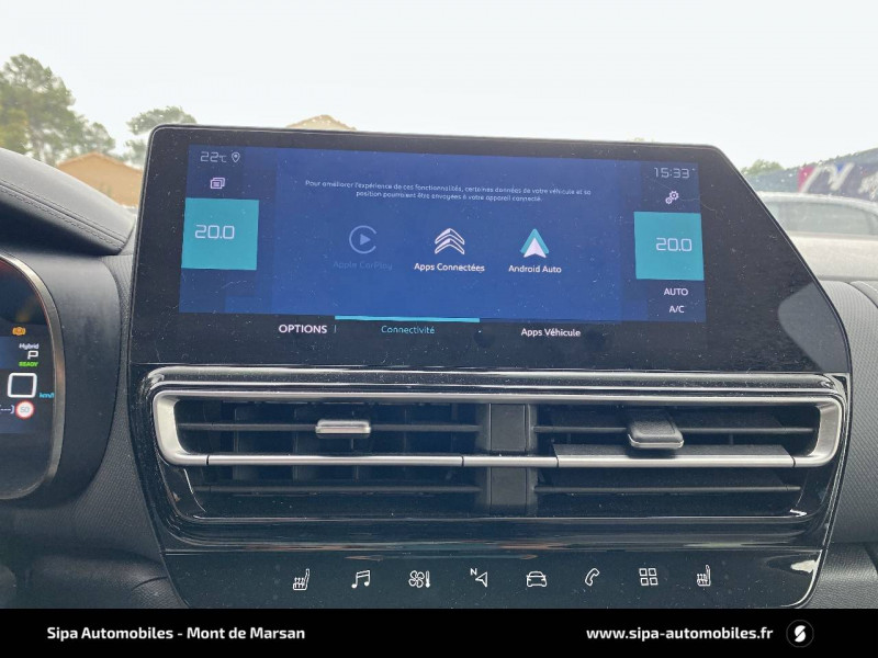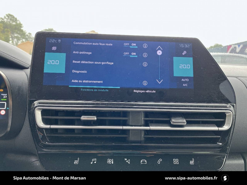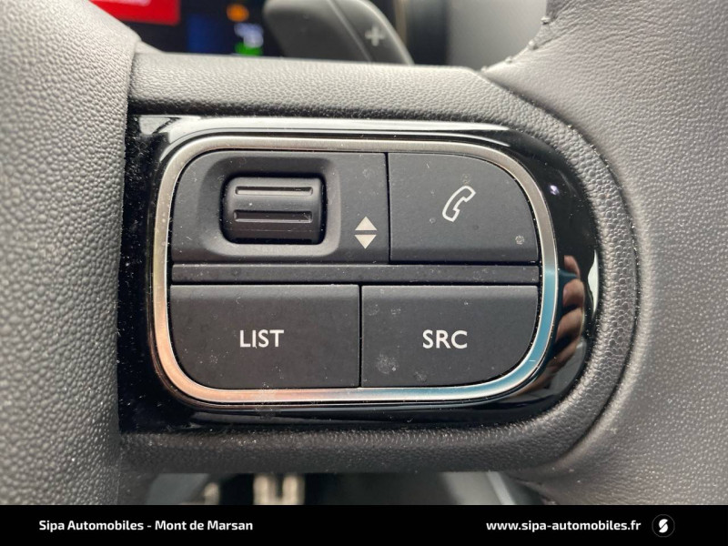 3 sièges AR indépendants, coulissants, inclinables et escamotables / ABS + AFU + ESP + REF / Boîtier télématique : Appel d'urgence et Citroën Assistance les services Connect ONE pendant une période de 10 ans / Câble de recharge Mode 2, prise de charge T2/EF, longueur 6 mètres / Calandre supérieure Noir Brillant / Caméra de recul avec Top Rear Vision / Chargeur embarqué 3,7 kW / Combiné numérique 12,3" personnalisable / Détection de sous-gonflage / Elargisseurs d'aile et bas de caisse Noir Mat / Enjoliveurs de contour de vitres latérales chromés / Essuie-vitres AV automatique Magic Wash / Feux diurnes à LED avec clignotants à LED / Frein de stationnement électrique automatique / Garnissage Tissu SAO /Toile enduite Grise/Ambiance Metropolitan Grey avec Sièges Advanced Comfort / Inserts colorés Dark Chrome sur Airbump et bouclier AV / Jantes alliage 18" PULSAR Diamantées bi-ton / Kit de dépannage provisoire des pneumatiques / Navigation sur écran central 10" tactile Comprend le système de navigation TomTom, la reconnaissance vocale avec langage naturel, l'interface personnalisable, et les services Connect PLUS additionnels / Pack Access & Drive Accés mains libres,Aide stationnement en avant,Alerte Attention Conducteur,Commutation automatique des feux de route,Pack Safety + (Hybride rechargeable PLUS),Active Safety Brake 2.0 Système de surveillance d'angle mort,Reconnaissance étendue des panneaux et recommandation de vitesse,Régulateur de vitesse adaptatif avec baisse de la vitesse jusqu'à 30 km/h sur BVM6,Régulateur de vitesse adaptatif avec fonction Stop & G,Rétroviseurs extérieurs rabattables électriquement avec éclairage d'accueil / Pack Color Dark Chrome / Pack Drive Assist Alerte Attention Conducteur, Commutation automatique des feux de route, Régulateur de vitesse adaptatif avec fonction Stop & Go / Pack Safety - Active Safety Brake - Alerte active de Franchissement Involontaire de Ligne - Coffee Break Alert - Reconnaissance étendue des panneaux et recommandation de vitesse - Régulateur-limiteur de vitesse / Prises 12 V sur la console centrale et dans le coffre / Projecteurs antibrouillard avec éclairage statique d'intersection / Rétroviseur intérieur électrochrome / Sabots de protection Aluminium Brillant / Services Connect PLUS pendant 12 mois / Siège conducteur avec réglage lombaire / Sièges Advanced Comfort / Suspension Citroën Advanced Comfort / Système audio numérique bi-tuner RDS MP3 (DAB) / Toit bi-ton Noir Perla Nera / Vitres latérales AV feuilletées et acoustiques