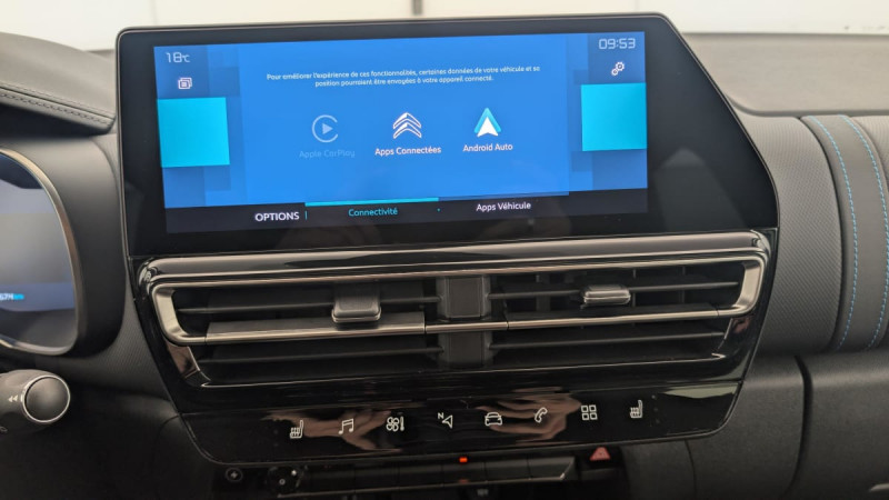 Projecteurs antibrouillard avec éclairage statique d'intersection / Détection de sous-gonflage / Pack Color Dark Chrome : Inserts colorés Dark Chrome sur Airbump et bouclier AV / Accès et démarrage mains libres / Kit de dépannage provisoire des pneumatiques / Pack Safety : Coffee Break Alert Alerte Risque Collision Alerte active de Franchissement Involontaire de ligne Reconnaissance des panneaux de vitesse et recommandation / Pack Confort : Sièges AV chauffants / 3 sièges AR indépendants, coulissants, inclinables et escamotables / Essuie-vitres AV automatique Magic Wash / Sièges Advanced Comfort / Combiné numérique 12,3" personnalisable / Vitres latérales AV feuilletées et acoustiques / Chargeur embarqué 3,7 kW / Pack Drive Assist + : Pack Drive Assist / ABS + AFU + ESP + REF / Suspension Citroën Advanced Comfort / Siège conducteur avec réglage lombaire / Câble de recharge Mode 2, prise de charge T2/EF, longueur 6 mètres / Inserts colorés Dark Chrome sur Airbump et bouclier AV / Garnissage Cuir Grainé Noir/Tissu effect cuir Gris/Ambiance Metropolitan Black avec Sièges Advanced Comfort / Barres de toit Noir Brillant avec insert Noir mat / My Citroën Drive avec écran tactile 10" Comprend le système de navigation TomTom / Feux diurnes à LED avec clignotants à LED / Prises 12 V sur la console centrale et dans le coffre / Jantes alliage 19" ART Diamantées bi-ton / Pack Safety + : Système de surveillance d'angle mort Active Safety Brake 2.0 Fonctionne à l'aide d'un Radar de 7 à 140 km/h, même de nuit et détecte les cyclistes / My Citroën Assist : Citroën Connect Box / Aide au stationnement AV + Caméra de recul avec Top Rear Vision Comprend les Projecteurs antibrouillard avec éclairage statique d?intersection. / Rétroviseur intérieur électrochrome / Frein de stationnement électrique automatique / Pédalier et repose pieds aluminium /