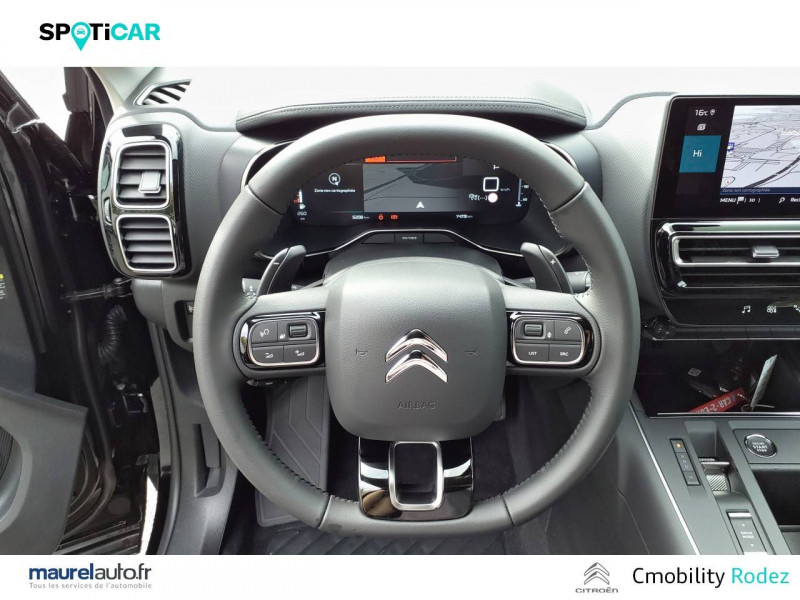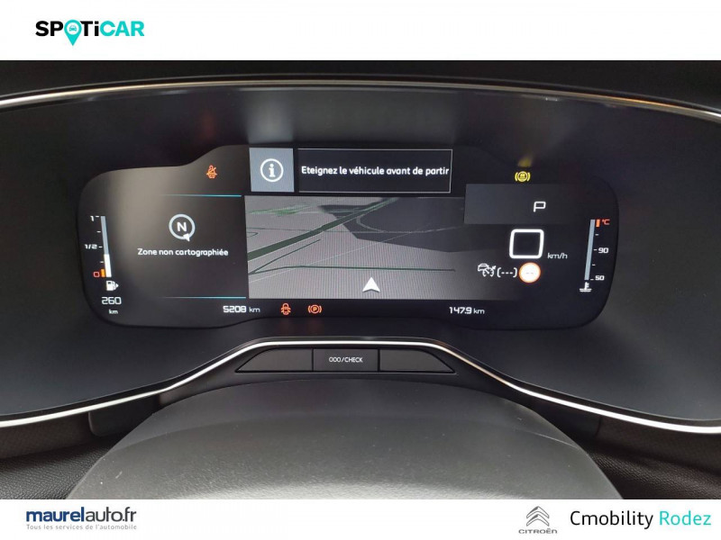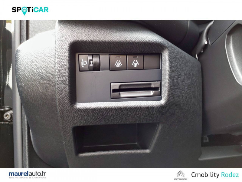 3 sièges AR indépendants, coulissants, inclinables et escamotables / ABS + AFU + ESP + REF / Accès et démarrage mains libres / Boîte automatique 8 rapports / Boîtier télématique : Appel d'urgence et Citroën Assistance les services Connect ONE pendant une période de 10 ans / Calandre supérieure Noir Brillant / Caméra de recul avec Top Rear Vision / Combiné numérique 12,3" personnalisable / Détection de sous-gonflage / Elargisseurs d'aile et bas de caisse Noir Mat / Enjoliveurs de contour de vitres latérales chromés / Essuie-vitres AV automatique Magic Wash / Feux diurnes à LED avec clignotants à LED / Frein de stationnement électrique automatique / Garnissage Tissu Bruneo chine/Toile enduite Noire/Ambiance Metropolitan Black avec Sièges Advanced Comfort / Jantes alliage 18" PULSAR Diamantées bi-ton / Navigation 3D sur écran central 10" tactile Comprend le système de navigation TomTom, la reconnaissance vocale avec langage naturel, l'interface personnalisable, et les services Connect PLUS additionnels / Pack Color Noir Brillant Inserts colorés Noir Brillant sur Airbump et bouclier AV / Pack Drive Assist Aide maintien dans la voie, Alerte Attention Conducteur, Commutation automatique des feux de route, Highway Driver Assist (système de conduite autonome de niveau 2), Régulateur de vitesse adaptatif avec fonction Stop & Go / Pack Safety - Active Safety Brake - Alerte active de Franchissement Involontaire de Ligne - Coffee Break Alert - Reconnaissance étendue des panneaux et recommandation de vitesse - Régulateur-limiteur de vitesse / Plancher de coffre escamotable / Poignées de portes extérieures Noir Brillant / Prise 12V sur la console centrale / Projecteurs antibrouillard avec éclairage statique d'intersection / Rétroviseur intérieur électrochrome / Sabots de protection Aluminium Brillant / Services Connect PLUS pendant 12 mois / Siège conducteur avec réglage lombaire / Suspension Citroën Advanced Comfort / TCS (Contrôle de la traction)