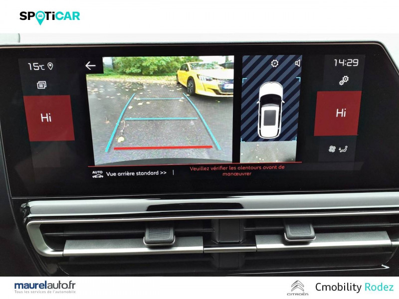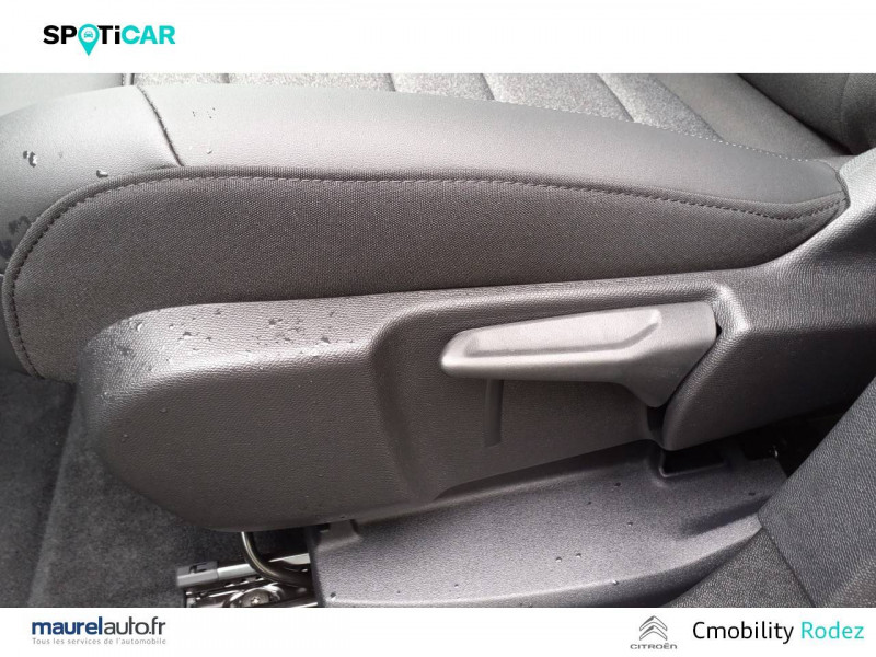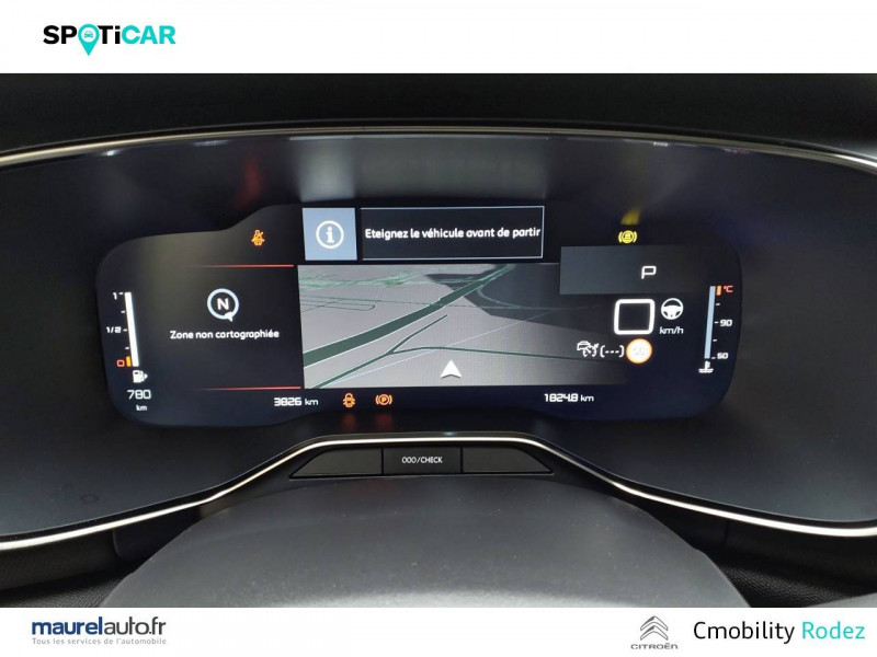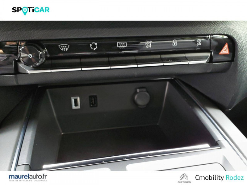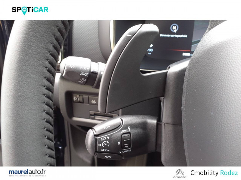 3 sièges AR indépendants, coulissants, inclinables et escamotables / ABS + AFU + ESP + REF / Accès et démarrage mains libres / Boîte automatique 8 rapports / Boîtier télématique : Appel d'urgence et Citroën Assistance les services Connect ONE pendant une période de 10 ans / Calandre supérieure Noir Brillant / Caméra de recul avec Top Rear Vision / Combiné numérique 12,3" personnalisable / Détection de sous-gonflage / Elargisseurs d'aile et bas de caisse Noir Mat / Enjoliveurs de contour de vitres latérales chromés / Essuie-vitres AV automatique Magic Wash / Feux diurnes à LED avec clignotants à LED / Frein de stationnement électrique automatique / Garnissage Tissu Bruneo chine/Toile enduite Noire/Ambiance Metropolitan Black avec Sièges Advanced Comfort / Jantes alliage 18" PULSAR Diamantées bi-ton / Navigation 3D sur écran central 10" tactile Comprend le système de navigation TomTom, la reconnaissance vocale avec langage naturel, l'interface personnalisable, et les services Connect PLUS additionnels / Pack Color Noir Brillant Inserts colorés Noir Brillant sur Airbump et bouclier AV / Pack Drive Assist Aide maintien dans la voie, Alerte Attention Conducteur, Commutation automatique des feux de route, Highway Driver Assist (système de conduite autonome de niveau 2), Régulateur de vitesse adaptatif avec fonction Stop & Go / Pack Safety - Active Safety Brake - Alerte active de Franchissement Involontaire de Ligne - Coffee Break Alert - Reconnaissance étendue des panneaux et recommandation de vitesse - Régulateur-limiteur de vitesse / Plancher de coffre escamotable / Poignées de portes extérieures Noir Brillant / Prise 12V sur la console centrale / Projecteurs antibrouillard avec éclairage statique d'intersection / Rétroviseur intérieur électrochrome / Sabots de protection Aluminium Brillant / Services Connect PLUS pendant 12 mois / Siège conducteur avec réglage lombaire / Suspension Citroën Advanced Comfort / TCS (Contrôle de la traction)