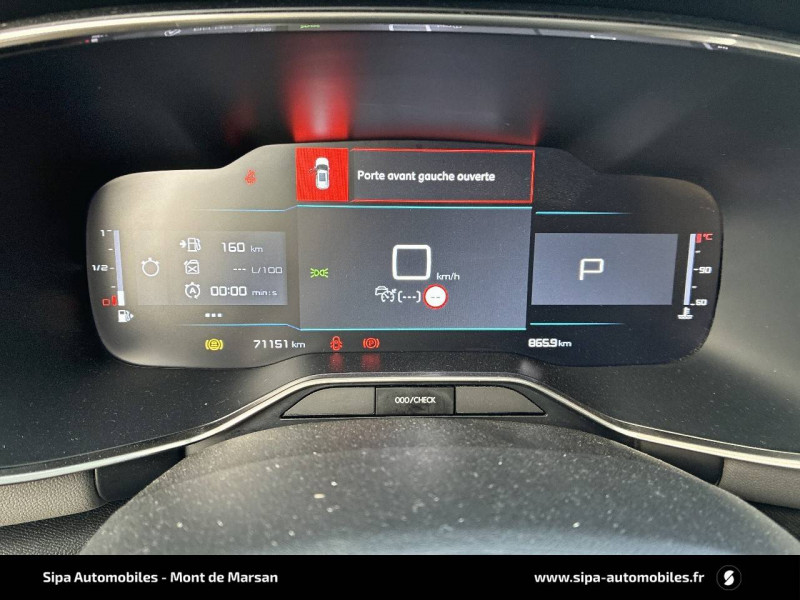 3 sièges AR indépendants, coulissants, inclinables et escamotables / ABS + REF / Citroën Connect Radio sur tablette tactile 8" / Combiné numérique 12,3" personnalisable / Détection de sous-gonflage / Elargisseurs d'aile et bas de caisse Noir Mat / Enjoliveurs de contour de vitres latérales chromés / ESP et AFU / Essuie-vitres AV automatique Magic Wash / Frein de stationnement électrique automatique / Garnissage Tissu Stone Grey/Tissu effet cuir Noir/Ambiance Wild Grey Evo / Inserts colorés Silver Anodisé sur Airbump et bouclier AV / Kit de dépannage provisoire des pneumatiques / Mirror Screen Compatible avec Android Auto et Apple CarPlayTM / Pack Color Silver Anodisé / Pack Safety - Active Safety Brake - Alerte active de Franchissement Involontaire de Ligne - Alerte Attention Conducteur - Alerte Risque Collision - Coffee Break Alert - Reconnaissance des panneaux de vitesse et recommandation - Régulateur-limiteur de vitesse - Témoin de non-bouclage des ceintures de sécurité conducteur et passagers / Pare-chocs AR avec double canule chromée / Plancher de coffre escamotable / Prises 12V sur la console centrale et dans le coffre / Projecteurs antibrouillard avec éclairage statique d'intersection / Siège conducteur avec réglage lombaire et accoudoir / Sièges Advanced Comfort / Suspensions avec Butées Hydrauliques Progressives / Teinte de caisse opaque Blanc Banquise