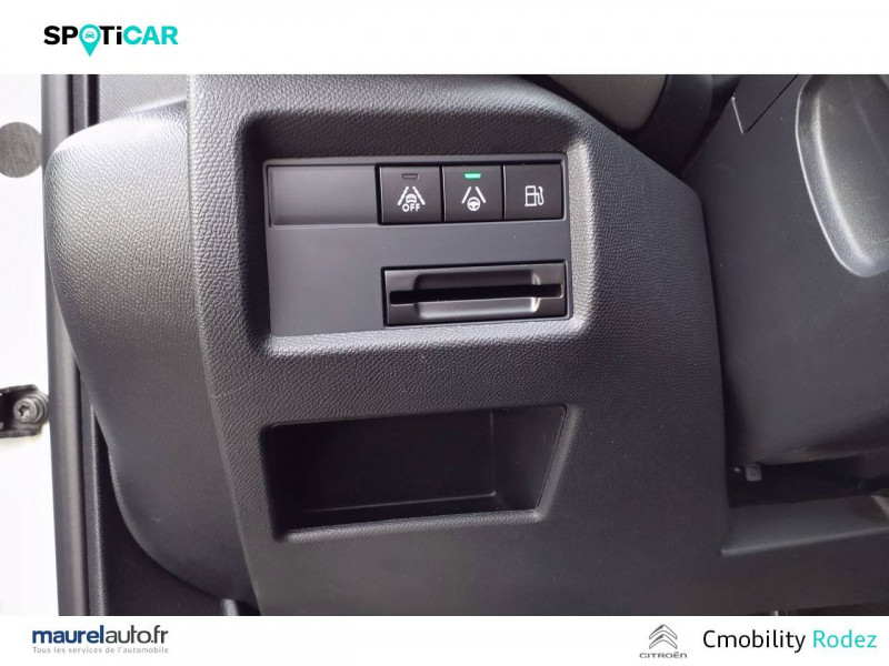 3 sièges AR indépendants, coulissants, inclinables et escamotables / ABS + AFU + ESP + REF / Accès et démarrage mains libres / Barres de toit bi-ton Silver / Câble électrique mode 2, prise de charge T2/EF / Calandre supérieure Noir Brillant / Caméra de recul avec Top Rear Vision+ Aide au stationnement avant / Chargeur embarqué 3,7 kW / Citroën Connect Nav et Citroën Connect Box avec Pack SOS et assistance inclus Comprend le système de navigation TomTom, la reconnaissance vocale et durant 3 ans les services Connect Nav (inclut les services « Zones de danger », « Info Trafic », « Stations-service », « Parkings », « Météo » et « Recherche locale »). / Citroën Connect Radio sur tablette tactile 8" / Clignotants AV à LED / Combiné numérique 12,3" personnalisable / Détection de sous-gonflage / Elargisseurs d'aile et bas de caisse Noir Mat / Enjoliveurs de contour de vitres latérales chromés / ESP et AFU / Essuie-vitres AV automatique Magic Wash / Frein de stationnement électrique automatique / Garnissage Cuir Grainé Graphite/Tissu Graphite/Ambiance Metropolitan Grey Comprend les appuie-tetes AV (2 voies) et les surtapis AV et AR / Hayon mains libres / Highway Driver Assist / Inserts colorés Silver Anodisé sur Airbump et bouclier AV / Jantes alliage 19" ART Diamantées bi-ton / Kit de dépannage provisoire des pneumatiques / Mirror Screen Compatible avec Android Auto et Apple CarPlayTM / Pack Drive Assist / Pack Drive Assist + / Pack Look Silver Anodisé / Pack Safety + / Pare-chocs AR avec double canule chromée / Pédalier et repose pieds aluminium / Prises 12V sur la console centrale et dans le coffre / Projecteurs antibrouillard avec éclairage statique d'intersection / Recharge sans fil pour smartphone / Rétroviseur intérieur électrochrome HYBRID avec LED "ZEV Mode" / Seuils de portes AV Inox / Siège conducteur avec réglage lombaire et accoudoir / Siège conducteur électrique (8 voies) / Sièges Advanced Comfort / Surtapis AV et AR / Suspensions avec Butées Hydrauliques Progressives / Teinte de caisse opaque Blanc Banquise / Vitres latérales AV feuilletées et acoustiques