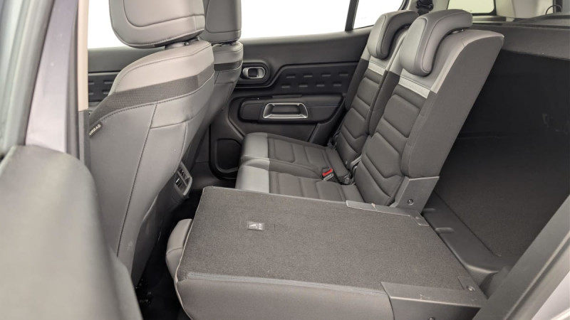 Détection de sous-gonflage / Kit de dépannage provisoire des pneumatiques / Pack Safety : Régulateur-limiteur de vitesse Coffee Break Alert Alerte Risque Collision Active Safety Brake fonctionne de 10 à 85 km/h et détecte les piétons Alerte active de Franchissement Involontaire de ligne Reconnaissance des panneaux de vitesse et recommandation / Elargisseurs d'aile et bas de caisse Noir Mat / 3 sièges AR indépendants, coulissants, inclinables et escamotables / Enjoliveurs de contour de vitres latérales chromés / Essuie-vitres AV automatique Magic Wash / Pare-chocs AR avec double canule chromée / Combiné numérique 12,3" personnalisable / ABS + AFU + ESP + REF / Suspension Citroën Advanced Comfort / Siège conducteur avec réglage lombaire / Inserts colorés Noir Brillant sur Airbump et bouclier AV / Garnissage Tissu SAO Noir/Tissu effet cuir Gris/Ambiance Wild Black avec Sièges Advanced Comfort / My Citroën Play - Mirror Screen, Système audio numérique bi-tuner RDS MP3 (DAB), Tablette tactile 8" / Feux diurnes à LED avec clignotants à LED / Planche de coffre escamotable / Sabot de protection Noir Brillant / Prises 12 V sur la console centrale et dans le coffre / Frein de stationnement électrique automatique /