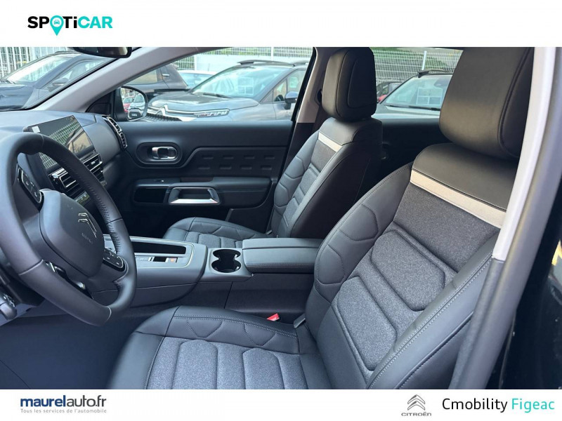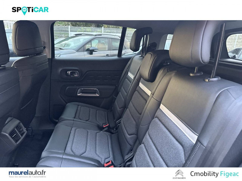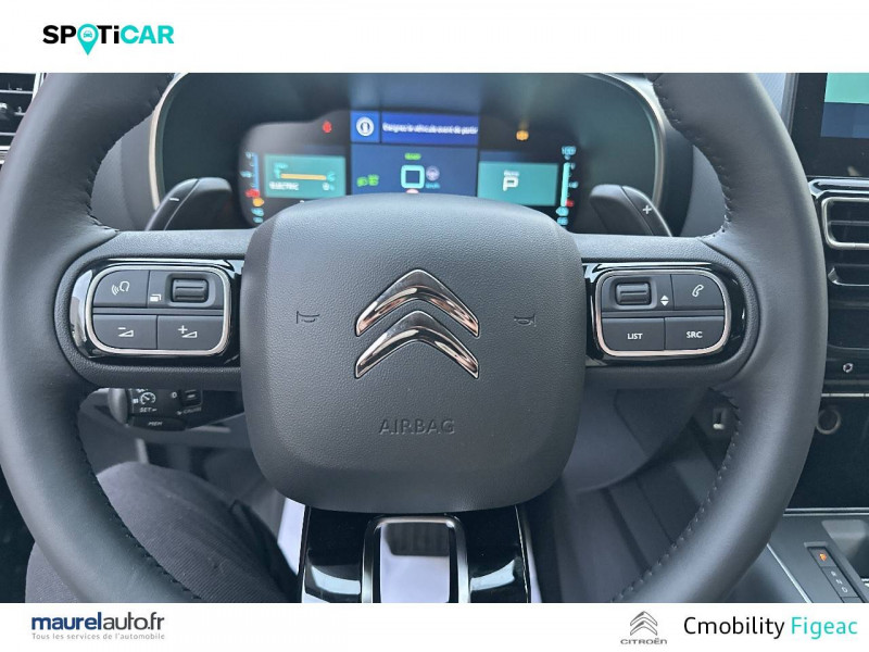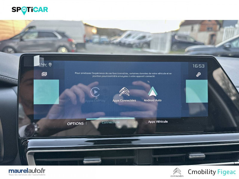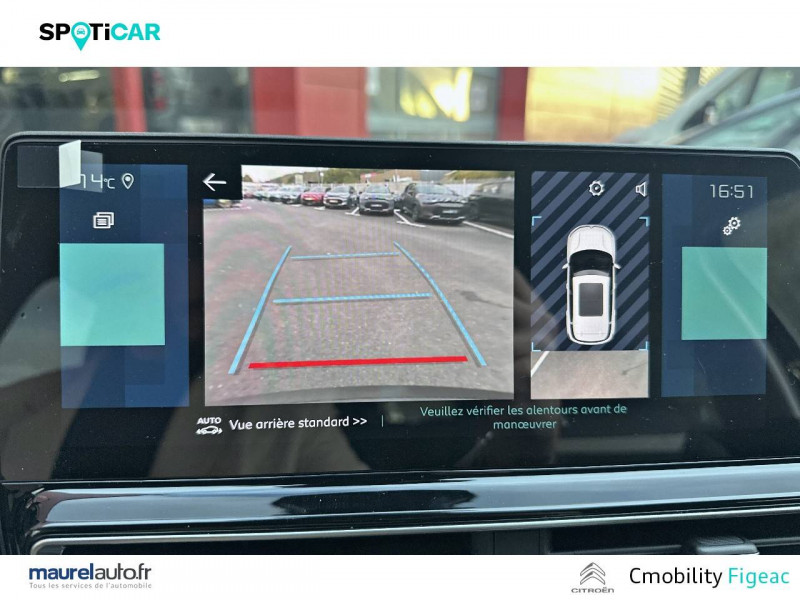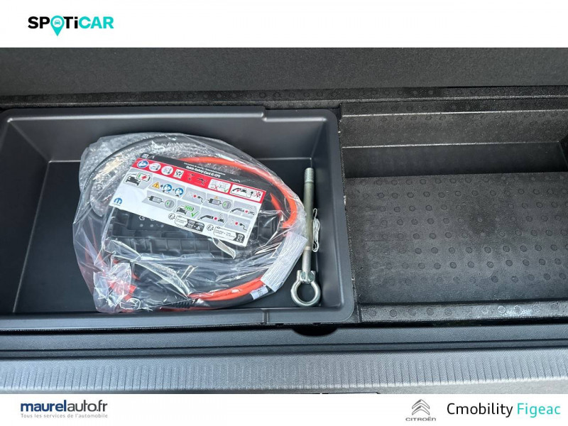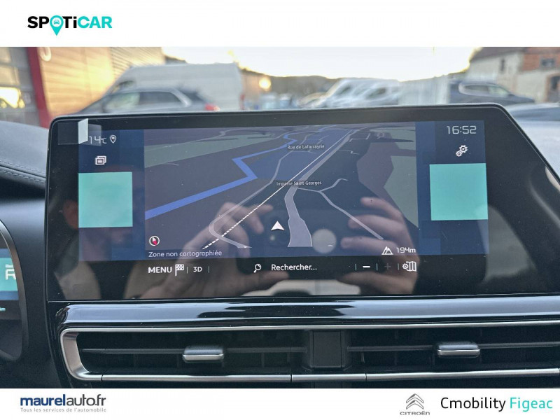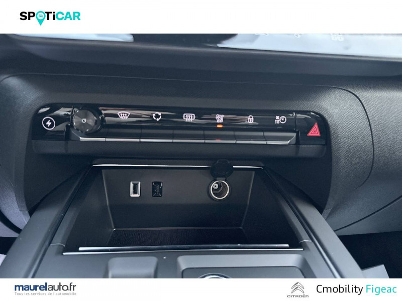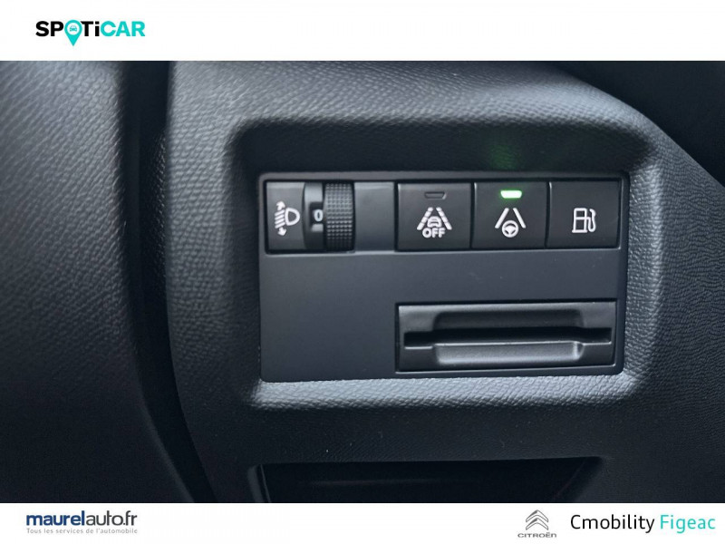 Boîte automatique 8 rapports / Essuie-vitres AV automatique Magic Wash / Feux diurnes à LED avec clignotants à LED / Frein de stationnement électrique automatique / Jantes alliage 18" PULSAR Diamantées bi-ton / Navigation 3D sur écran central 10" tactile Comprend le système de navigation TomTom, la reconnaissance vocale avec langage naturel, l'interface personnalisable, et les services Connect PLUS additionnels / Pack Color Noir Brillant Inserts colorés Noir Brillant sur Airbump et bouclier AV / Pack Drive Assist Aide maintien dans la voie, Alerte Attention Conducteur, Commutation automatique des feux de route, Highway Driver Assist (système de conduite autonome de niveau 2), Régulateur de vitesse adaptatif avec fonction Stop & Go / Pack Safety - Active Safety Brake - Alerte active de Franchissement Involontaire de Ligne - Coffee Break Alert - Reconnaissance étendue des panneaux et recommandation de vitesse - Régulateur-limiteur de vitesse / Sabots de protection Aluminium Brillant / 3 sièges AR indépendants, coulissants, inclinables et escamotables / ABS + AFU + ESP + REF / Accès et démarrage mains libres / Boîtier télématique : Appel d'urgence et Citroën Assistance les services Connect ONE pendant une période de 10 ans / Calandre supérieure Noir Brillant / Caméra de recul avec Top Rear Vision / Chargeur embarqué 3,7 kW / Combiné numérique 12,3" personnalisable / Câble de recharge Mode 2, prise de charge T2/EF, longueur 6 mètres / Détection de sous-gonflage / Elargisseurs d'aile et bas de caisse Noir Mat / Enjoliveurs de contour de vitres latérales chromés / Garnissage Tissu Bruneo chine/Toile enduite Noire/Ambiance Metropolitan Black avec Sièges Advanced Comfort / Poignées de portes extérieures Noir Brillant / Prise 12V sur la console centrale / Projecteurs antibrouillard avec éclairage statique d'intersection / Rétroviseur intérieur électrochrome / Services Connect PLUS pendant 12 mois / Siège conducteur avec réglage lombaire / Suspension Citroën Advanced Comfort / TCS (Contrôle de la traction)