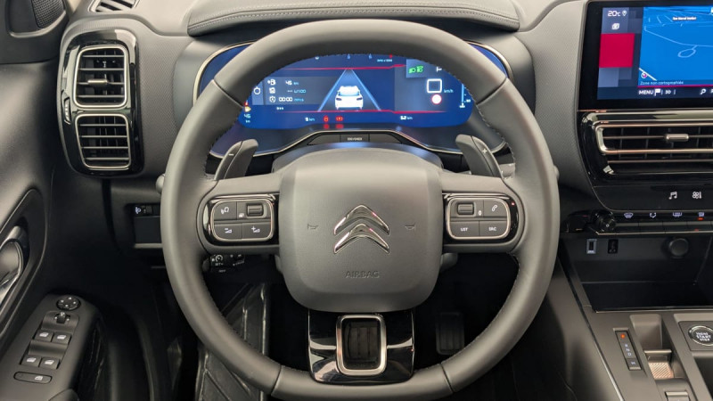 Projecteurs antibrouillard avec éclairage statique d'intersection / Détection de sous-gonflage / Elargisseurs d'aile et bas de caisse Noir Mat / Caméra de recul avec Top Rear Vision / 3 sièges AR indépendants, coulissants, inclinables et escamotables / Enjoliveurs de contour de vitres latérales chromés / Essuie-vitres AV automatique Magic Wash / Combiné numérique 12,3" personnalisable / Plancher de coffre escamotable / Poignées de portes extérieures Noir Brillant / ABS + AFU + ESP + REF / Suspension Citroën Advanced Comfort / Siège conducteur avec réglage lombaire / Feux diurnes à LED avec clignotants à LED / Jantes alliage 18" PULSAR Diamantées bi-ton / Garnissage Tissu Bruneo chine/Toile enduite Noire/Ambiance Metropolitan Black avec Sièges Advanced Comfort / Navigation 3D sur écran central 10" tactile Comprend le système de navigation TomTom, la reconnaissance vocale avec langage naturel / Boîtier télématique : Appel d'urgence et Citroën Assistance / Pack Safety - Active Safety Brake - Alerte active de Franchissement Involontaire de Ligne - Coffee Break Alert - Reconnaissance étendue des panneaux et recommandation de vitesse - Régulateur-limiteur de vitesse : Régulateur-limiteur de vitesse Coffee Break Alert Alerte active de Franchissement Involontaire de ligne Active Safety Brake 2.0 Fonctionne à l'aide d'un Radar de 7 à 140 km/h, même de nuit et détecte les cyclistes Reconnaissance étendue des panneaux et recommandation de vitesse / Pack Safety + Système de surveillance d'angle mort : Système de surveillance d'angle mort / Pack Color Noir Brillant Inserts colorés Noir Brillant sur Airbump et bouclier AV : Inserts colorés Noir Brillant sur Airbump et bouclier AV / Prise 12V sur la console centrale / Pack Drive Assist Aide maintien dans la voie, Alerte Attention Conducteur, Commutation automatique des feux de route, Highway Driver Assist (système de conduite autonome de niveau 2), Régulateur de vitesse adaptatif avec fonction Stop & Go : Alerte attention conducteur Commutation automatique des feux de route Régulateur de vitesse adaptatif avec fonction Stop&Go Highway Driver Assist (système autonome de niveau 2) Aide maintien dans la voie / Rétroviseur intérieur électrochrome / Boîte automatique 8 rapports / Frein de stationnement électrique automatique /