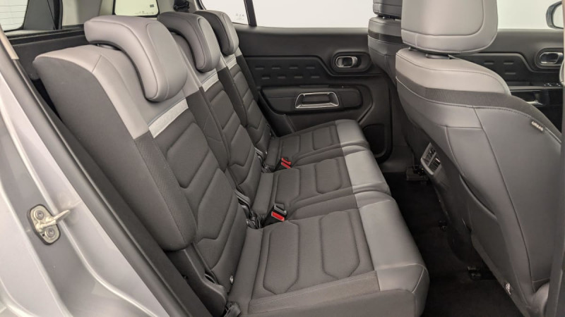 Détection de sous-gonflage / Kit de dépannage provisoire des pneumatiques / Pack Safety : Régulateur-limiteur de vitesse Coffee Break Alert Alerte Risque Collision Active Safety Brake fonctionne de 10 à 85 km/h et détecte les piétons Alerte active de Franchissement Involontaire de ligne Reconnaissance des panneaux de vitesse et recommandation / Elargisseurs d'aile et bas de caisse Noir Mat / 3 sièges AR indépendants, coulissants, inclinables et escamotables / Enjoliveurs de contour de vitres latérales chromés / Essuie-vitres AV automatique Magic Wash / Pare-chocs AR avec double canule chromée / Combiné numérique 12,3" personnalisable / ABS + AFU + ESP + REF / Suspension Citroën Advanced Comfort / Siège conducteur avec réglage lombaire / Inserts colorés Noir Brillant sur Airbump et bouclier AV / Garnissage Tissu SAO Noir/Tissu effet cuir Gris/Ambiance Wild Black avec Sièges Advanced Comfort / My Citroën Play - Mirror Screen, Système audio numérique bi-tuner RDS MP3 (DAB), Tablette tactile 8" / Feux diurnes à LED avec clignotants à LED / Planche de coffre escamotable / Sabot de protection Noir Brillant / Prises 12 V sur la console centrale et dans le coffre / Frein de stationnement électrique automatique /