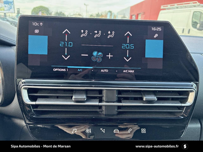 3 sièges AR indépendants, coulissants, inclinables et escamotables / ABS + AFU + ESP + REF / Accès et démarrage mains libres / Aide au stationnement AV + Caméra de recul avec Top Rear Vision Comprend les Projecteurs antibrouillard avec éclairage statique d'intersection. / Calandre supérieure Noir Brillant / Combiné numérique 12,3" personnalisable / Détection de sous-gonflage / Elargisseurs d'aile et bas de caisse Noir Mat / Enjoliveurs de contour de vitres latérales chromés / Essuie-vitres AV automatique Magic Wash / Feux diurnes à LED avec clignotants à LED / Frein de stationnement électrique automatique / Garnissage Tissu SAO Noir/Tissu effet cuir Gris/Ambiance Wild Black avec Sièges Advanced Comfort / Inserts colorés Noir Brillant sur Airbump et bouclier AV / Jantes alliage 18" PULSAR Diamantées bi-ton / Kit de dépannage provisoire des pneumatiques / My Citroën Drive avec écran tactile 10" Comprend le système de navigation TomTom, la reconnaissance vocale et durant 3 ans les services Connect Nav / My Citroën Play -Mirror Screen, Système audio numérique bi-tuner RDS MP3 (DAB), Tablette tactile 10" / Pack Safety - Active Safety Brake - Alerte active de Franchissement Involontaire de Ligne - Alerte Attention Conducteur - Alerte Risque Collision - Coffee Break Alert - Reconnaissance des panneaux de vitesse et recommandation - Régulateur-limiteur de vitesse - Témoin de non-bouclage des ceintures de sécurité conducteur et passagers / Pare-chocs AR avec double canule chromée / Personnalisation extérieure C-Series : badges C-Series sur les ailes AV, inserts sur les Airbump et inserts sur le bouclier AV Bronze Anodisé. / Planche de coffre escamotable / Prises 12 V sur la console centrale et dans le coffre / Projecteurs antibrouillard avec éclairage statique d'intersection / Rétroviseur intérieur électrochrome / Sabots de protection Aluminium Brillant / Siège conducteur avec réglage lombaire / Sièges Advanced Comfort / Suspension Citroën Advanced Comfort