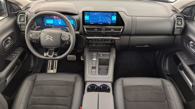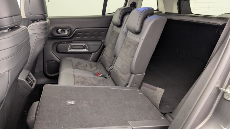 Projecteurs antibrouillard avec éclairage statique d'intersection / Détection de sous-gonflage / Pack Color Dark Chrome : Inserts colorés Dark Chrome sur Airbump et bouclier AV / Accès et démarrage mains libres / Kit de dépannage provisoire des pneumatiques / Pack Safety - Active Safety Brake - Alerte active de Franchissement Involontaire de Ligne - Alerte Attention Conducteur - Alerte Risque Collision - Coffee Break Alert - Reconnaissance des panneaux de vitesse et recommandation - Régulateur-limiteur de vitesse - Témoin de non-bouclage des ceintures de sécurité conducteur et passagers : Régulateur-limiteur de vitesse Coffee Break Alert Alerte Risque Collision Active Safety Brake fonctionne de 10 à 85 km/h et détecte les piétons Reconnaissance des panneaux de vitesse Alerte active de Franchissement Involontaire de ligne / Elargisseurs d'aile et bas de caisse Noir Mat / Sécurité enfants mécanique / Clignotants impulsionnels / Aérateurs en rang 2 / 3 sièges AR indépendants, coulissants, inclinables et escamotables / Enjoliveurs de contour de vitres latérales chromés / Essuie-vitres AV automatique Magic Wash / Pare-chocs AR avec double canule chromée / Combiné numérique 12,3" personnalisable / Vitres latérales AV feuilletées et acoustiques / ABS + AFU + ESP + REF / Suspension Citroën Advanced Comfort / Garnissage Alcantara Noir/Tissu effet cuir Noir/Ambiance Urban Black avec Sièges Advanced Comfort / Barres de toit Noir Brillant avec insert Noir mat / My Citroën Drive avec écran tactile 10" Comprend le système de navigation TomTom / My Citroën Play Hybrid avec tablette tactile 10" / Feux diurnes à LED avec clignotants à LED / Sabots de protection Aluminium Brillant / Accoudoir central mousséà ouverture papillon et réfrigéré / Calandre Noir Brillant avec chevrons noir brillant et entourage Chrome / Eclairage d'accueil et d'accompagnement / Prises 12 V sur la console centrale et dans le coffre / Jantes alliage 18" PULSAR Diamantées bi-ton / Pack Safety + : Système de surveillance d'angle mort Active Safety Brake 2.0 Fonctionne à l'aide d'un Radar de 7 à 140 km/h, même de nuit et détecte les cyclistes / Pack Drive Assist : Reconnaissance des panneaux de vitesse Commutation automatique des feux de route Reconnaissance étendue des panneaux Régulateur de vitesse adaptatif avec fonction Stop&Go / My Citroën Assist : Citroën Connect Box avec Pack SOS et assistance inclus / Rétroviseur intérieur électrochrome / Siège conducteur avec réglage lombaire et accoudoir / Frein de stationnement électrique automatique / Pédalier et repose pieds aluminium /