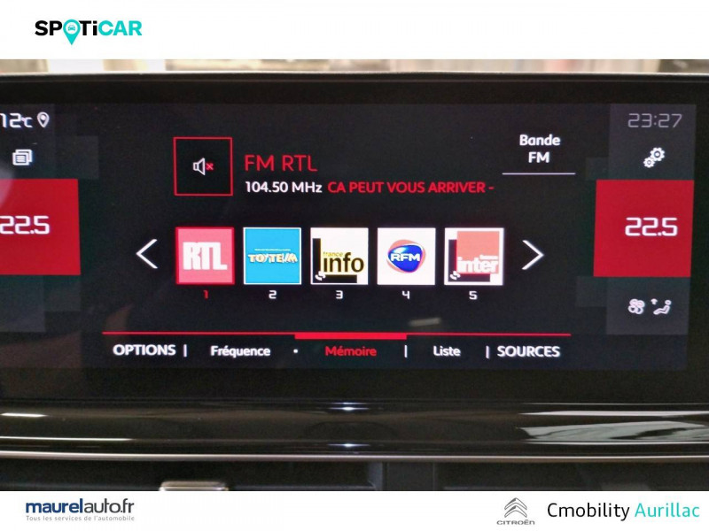 3 sièges AR indépendants, coulissants, inclinables et escamotables / ABS + AFU + ESP + REF / Accès et démarrage mains libres / Accoudoir central mousséà ouverture papillon et réfrigéré / Aérateurs en rang 2 / Alerte attention conducteur / Barres de toit Noir Brillant avec insert Noir mat / Calandre Noir Brillant avec chevrons noir brillant et entourage Chrome / Caméra de recul avec Top Rear Vision / Clignotants impulsionnels / Combiné numérique 12,3" personnalisable / Détection de sous-gonflage / Eclairage d'accueil et d'accompagnement / Elargisseurs d'aile et bas de caisse Noir Mat / Enjoliveur de montant central Noir Brillant / Enjoliveurs de contour de vitres latérales chromés / Essuie-vitres AV automatique Magic Wash / Feux diurnes à LED avec clignotants à LED / Frein de stationnement électrique automatique / Garnissage Alcantara Noir/Tissu effet cuir Noir/Ambiance Urban Black avec Sièges Advanced Comfort / Inserts colorés Dark Chrome sur Airbump et bouclier AV / Jantes alliage 18" PULSAR Diamantées bi-ton / Kit de dépannage provisoire des pneumatiques / My Citroën Assist : Citroën Connect Box avec Pack SOS et assistance inclus / My Citroën Drive avec écran tactile 10" Comprend le système de navigation TomTom, la reconnaissance vocale et durant 3 ans les services Connect Nav / My Citroën Play -Mirror Screen, Système audio numérique bi-tuner RDS MP3 (DAB), Tablette tactile 10" / Pack Color Dark Chrome / Pack Drive Assist / Pack Safety + / Pack Safety - Active Safety Brake - Alerte active de Franchissement Involontaire de Ligne - Alerte Attention Conducteur - Alerte Risque Collision - Coffee Break Alert - Reconnaissance des panneaux de vitesse et recommandation - Régulateur-limiteur de vitesse - Témoin de non-bouclage des ceintures de sécurité conducteur et passagers / Pare-chocs AR avec double canule chromée / Pédalier et repose pieds aluminium / Plafonnier AV à lampes avec lecteurs de cartes / Planche de coffre escamotable / Poignées de portes extérieures couleur caisse / Prises 12 V sur la console centrale et dans le coffre / Rétroviseur intérieur électrochrome / Sabots de protection Aluminium Brillant / Sécurité enfants mécanique / Seuils de portes AV Inox / Siège conducteur avec réglage lombaire et accoudoir / Sièges Advanced Comfort / Surtapis AV et AR / Suspension Citroën Advanced Comfort / Tapis de fonde de coffre / Témoin de non-bouclage des ceintures de sécurité conducteur et passagers / Vitres latérales AV feuilletées et acoustiques / Volant à commandes intégrées