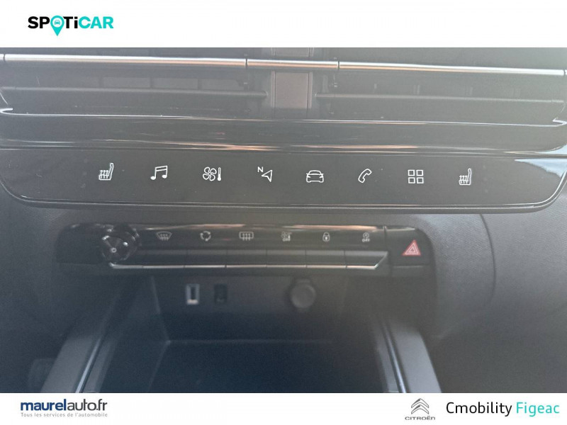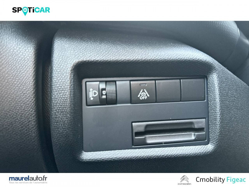 3 sièges AR indépendants, coulissants, inclinables et escamotables / ABS + AFU + ESP + REF / Boîtier télématique : Appel d'urgence et Citroën Assistance les services Connect ONE pendant une période de 10 ans / Calandre supérieure Noir Brillant / Caméra de recul avec Top Rear Vision / Combiné numérique 12,3" personnalisable / Détection de sous-gonflage / Elargisseurs d'aile et bas de caisse Noir Mat / Enjoliveurs de contour de vitres latérales chromés / Essuie-vitres AV automatique Magic Wash / Feux diurnes à LED avec clignotants à LED / Frein de stationnement électrique automatique / Garnissage Tissu Silica Grey / Navigation 3D sur écran central 10" tactile Comprend le système de navigation TomTom, la reconnaissance vocale avec langage naturel, l'interface personnalisable, et les services Connect PLUS additionnels / Pack Color Noir Brillant Inserts colorés Noir Brillant sur Airbump et bouclier AV / Pack Safety - Active Safety Brake - Alerte active de Franchissement Involontaire de Ligne - Coffee Break Alert - Reconnaissance étendue des panneaux et recommandation de vitesse - Régulateur-limiteur de vitesse / Plancher de coffre escamotable / Poignées de portes extérieures Noir Brillant / Prise 12V sur la console centrale / Sabot de protection Noir Brillant / Services Connect PLUS pendant 12 mois / Suspension Citroën Advanced Comfort
