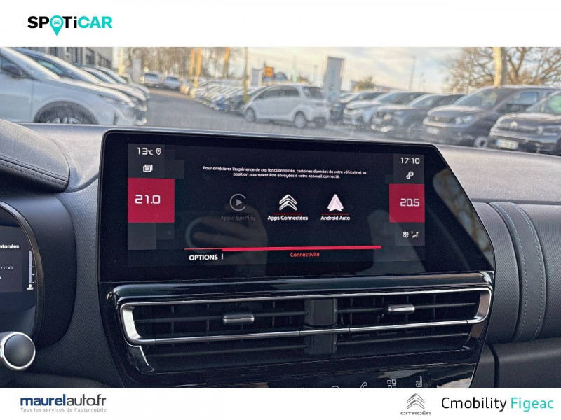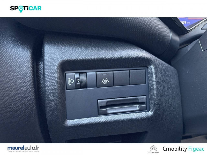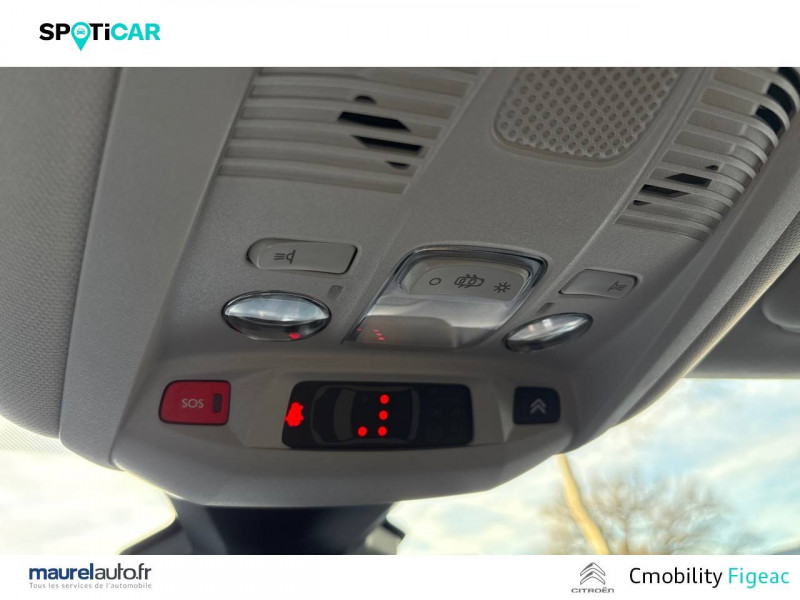 3 sièges AR indépendants, coulissants, inclinables et escamotables / ABS + AFU + ESP + REF / Boîtier télématique : Appel d'urgence et Citroën Assistance les services Connect ONE pendant une période de 10 ans / Calandre supérieure Noir Brillant / Caméra de recul avec Top Rear Vision / Combiné numérique 12,3" personnalisable / Détection de sous-gonflage / Elargisseurs d'aile et bas de caisse Noir Mat / Enjoliveurs de contour de vitres latérales chromés / Essuie-vitres AV automatique Magic Wash / Feux diurnes à LED avec clignotants à LED / Frein de stationnement électrique automatique / Garnissage Tissu Silica Grey / Navigation 3D sur écran central 10" tactile Comprend le système de navigation TomTom, la reconnaissance vocale avec langage naturel, l'interface personnalisable, et les services Connect PLUS additionnels / Pack Color Noir Brillant Inserts colorés Noir Brillant sur Airbump et bouclier AV / Pack Safety - Active Safety Brake - Alerte active de Franchissement Involontaire de Ligne - Coffee Break Alert - Reconnaissance étendue des panneaux et recommandation de vitesse - Régulateur-limiteur de vitesse / Plancher de coffre escamotable / Poignées de portes extérieures Noir Brillant / Prise 12V sur la console centrale / Sabot de protection Noir Brillant / Services Connect PLUS pendant 12 mois / Suspension Citroën Advanced Comfort