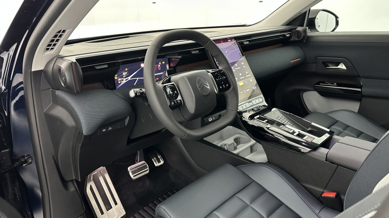 Color Clips Gold Satin / Ambiance Hype Blue / Projecteurs Citroën Matrix LED / Pédalier et repose-pied en aluminium / Siège conducteur à réglage électrique (8 directions) avec mémoire de position / Éclairage d?ambiance étendu, 8 couleurs / Banquette arrière avec dossiers inclinables et accoudoir central / Feux arrière à LED Citroën Light Wings / Vitres arrière, vitres de custode et lunette arrière surteintées / Allumage adaptative des feux de croisement / Hayon motorisé mains libres / Accès et Démarrage Mains Libres Proximity / Rétroviseur intérieur électrochrome / Recharge sans fil pour smartphone / Écran Cascade 13" avec Navigation 3D Connectée / Combiné numérique 10?? personnalisable / Allumage automatique des feux de croisement et Essuie-vitre Magic Wash® / Aide au stationnement avant et arrière avec VisioPark 360° / Pack Drive Assist 2.0 / Boîtier télématique SOS (Appel d?urgence et Citroën Assistance) / Frein de stationnement électrique / Pack Safety /