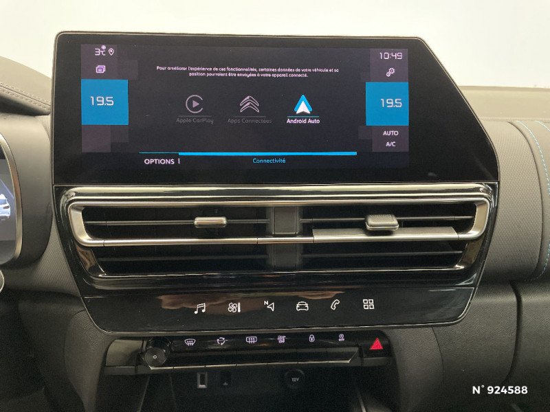 Clignotants impulsionnels / Poignées de portes extérieures couleur caisse / Inserts colorés Noir Brillant sur Airbump et bouclier AV / Garnissage Tissu SAO Noir/Tissu effet cuir Gris/Ambiance Wild Black avec Sièges Advanced Comfort / Siège conducteur avec réglage lombaire / Kit de dépannage provisoire des pneumatiques / My Citroën Drive avec écran tactile 10" Comprend le système de navigation TomTom, la reconnaissance vocale et durant 3 ans les services Connect Nav / Jantes alliage 18" PULSAR Diamantées bi-ton / Rétroviseur intérieur électrochrome / ABS + AFU + ESP + REF / Eclairage d'accueil et d'accompagnement / Prises 12 V sur la console centrale et dans le coffre / Volant à commandes intégrées / Tapis de fonde de coffre / Personnalisation extérieure C-Series : badges C-Series sur les ailes AV, inserts sur les Airbump et inserts sur le bouclier AV Bronze Anodisé. / Pack Color Bronze Anodisé / Suspension Citroën Advanced Comfort / 3 sièges AR indépendants, coulissants, inclinables et escamotables / Enjoliveurs de contour de vitres latérales chromés / Essuie-vitres AV automatique Magic Wash / Pare-chocs AR avec double canule chromée / Sièges Advanced Comfort / Combiné numérique 12,3" personnalisable / Accoudoir central mousséà ouverture papillon et réfrigéré / Calandre Noir Brillant avec chevrons noir brillant et entourage Chrome / Enjoliveur de montant central Noir Brillant / Pack Safety / My Citroën Assist : Citroën Connect Box avec Pack SOS et assistance inclus / Planche de coffre escamotable / Sabots de protection Aluminium Brillant / Caméra de recul avec Top Rear Vision / Frein de stationnement électrique automatique / Projecteurs antibrouillard avec éclairage statique d'intersection / Elargisseurs d'aile et bas de caisse Noir Mat / Témoin de non-bouclage des ceintures de sécurité conducteur et passagers / Détection de sous-gonflage / Feux diurnes à LED avec clignotants à LED / Aérateurs en rang 2 / Accès et démarrage mains libres / My Citroën Play -Mirror Screen, Système audio numérique bi-tuner RDS MP3 (DAB), Tablette tactile 10" / Plafonnier AV à lampes avec lecteurs de cartes / Sécurité enfants mécanique