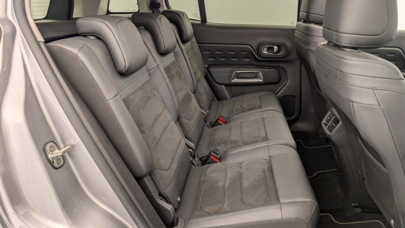 Projecteurs antibrouillard avec éclairage statique d'intersection / Détection de sous-gonflage / Pack Color Dark Chrome : Inserts colorés Dark Chrome sur Airbump et bouclier AV / Accès et démarrage mains libres / Kit de dépannage provisoire des pneumatiques / Pack Safety - Active Safety Brake - Alerte active de Franchissement Involontaire de Ligne - Alerte Attention Conducteur - Alerte Risque Collision - Coffee Break Alert - Reconnaissance des panneaux de vitesse et recommandation - Régulateur-limiteur de vitesse - Témoin de non-bouclage des ceintures de sécurité conducteur et passagers : Régulateur-limiteur de vitesse Coffee Break Alert Alerte Risque Collision Active Safety Brake fonctionne de 10 à 85 km/h et détecte les piétons Reconnaissance des panneaux de vitesse Alerte active de Franchissement Involontaire de ligne / Elargisseurs d'aile et bas de caisse Noir Mat / Sécurité enfants mécanique / Clignotants impulsionnels / Aérateurs en rang 2 / 3 sièges AR indépendants, coulissants, inclinables et escamotables / Essuie-vitres AV automatique Magic Wash / Combiné numérique 12,3" personnalisable / Vitres latérales AV feuilletées et acoustiques / ABS + AFU + ESP + REF / Suspension Citroën Advanced Comfort / Garnissage Alcantara Noir/Tissu effet cuir Noir/Ambiance Urban Black avec Sièges Advanced Comfort / Barres de toit Noir Brillant avec insert Noir mat / My Citroën Drive avec écran tactile 10" (Comprend le système de navigation TomTom) / Feux diurnes à LED avec clignotants à LED / Sabots de protection Aluminium Brillant / Accoudoir central mousséà ouverture papillon et réfrigéré / Calandre Noir Brillant avec chevrons noir brillant et entourage Chrome / Eclairage d'accueil et d'accompagnement / Prises 12 V sur la console centrale et dans le coffre / Jantes alliage 18" PULSAR Diamantées bi-ton / Pack Safety + : Système de surveillance d'angle mort Active Safety Brake 2.0 Fonctionne à l'aide d'un Radar de 7 à 140 km/h, même de nuit et détecte les cyclistes / Pack Drive Assist : Commutation automatique des feux de route Reconnaissance étendue des panneaux Régulateur de vitesse adaptatif avec fonction Stop&Go / My Citroën Assist : Citroën Connect Box / Rétroviseur intérieur électrochrome / Siège conducteur avec réglage lombaire / Frein de stationnement électrique automatique / Pédalier et repose pieds aluminium /