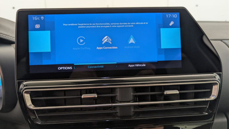 Détection de sous-gonflage / Pack Color Dark Chrome : Inserts colorés Dark Chrome sur Airbump et bouclier AV / Accès et démarrage mains libres / Kit de dépannage provisoire des pneumatiques / Pack Safety - Active Safety Brake - Alerte active de Franchissement Involontaire de Ligne - Alerte Attention Conducteur - Alerte Risque Collision - Coffee Break Alert - Reconnaissance des panneaux de vitesse et recommandation - Régulateur-limiteur de vitesse - Témoin de non-bouclage des ceintures de sécurité conducteur et passagers : Régulateur-limiteur de vitesse Coffee Break Alert Alerte Risque Collision Active Safety Brake fonctionne de 10 à 85 km/h et détecte les piétons Alerte active de Franchissement Involontaire de ligne Reconnaissance des panneaux de vitesse et recommandation / Elargisseurs d'aile et bas de caisse Noir Mat / Highway Driver Assist / Pack Confort : Sièges AV chauffants / 3 sièges AR indépendants, coulissants, inclinables et escamotables / Enjoliveurs de contour de vitres latérales chromés / Essuie-vitres AV automatique Magic Wash / Calandre supérieure Noir Brillant / Combiné numérique 12,3" personnalisable / Vitres latérales AV feuilletées et acoustiques / Siège conducteur électrique (8 voies) / ABS + AFU + ESP + REF / Suspension Citroën Advanced Comfort / Siège conducteur avec réglage lombaire / Garnissage Cuir Grainé Noir/Tissu effect cuir Gris/Ambiance Metropolitan Black avec Sièges Advanced Comfort / Barres de toit Noir Brillant avec insert Noir mat / My Citroën Drive avec écran tactile 10" Comprend le système de navigation TomTom, la reconnaissance vocale / My Citroën Play Hybrid avec tablette tactile 10" / Feux diurnes à LED avec clignotants à LED / Sabots de protection Aluminium Brillant / Prises 12 V sur la console centrale et dans le coffre / Jantes alliage 19" ART Diamantées bi-ton / My Citroën Assist : Citroën Connect Box / Aide au stationnement AV + Caméra de recul avec Top Rear Vision comprend les projecteurs antibrouillard avec éclairage statique d?intersection / Rétroviseur intérieur électrochrome / Frein de stationnement électrique automatique / Pédalier et repose pieds aluminium /