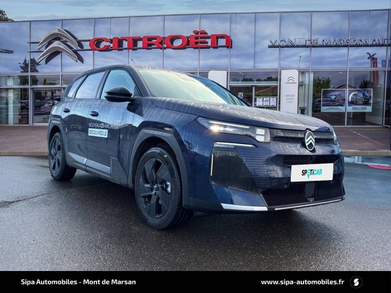 1 prise USB type-C rétroéclairées à l'AV (charge) / 2 prises USB type-C rétroéclairées à l'AR console centrale (charge) / 3 prises 12V Prises situées dans le Rang 1 console centrale, rang 2 AR console centrale et coffre / Accès et démarrage mains libres Proximity 2 Télécommandes 3 boutons (verrouillage, coffre et déverrouillage). / Accoudoir central AV avec rangement fermé et réfrigéré / Aérateurs de climatisation centraux pour les passagers AR / Aide au stationnement AV avec VisioPark 360° Comprend 4 caméras haute définition ainsi que 8 capteurs répartis autour du véhicule, offrant une vision à 360° de l'environnement. / Allumage adaptative des feux de croisement / Banquette AR avec dossier rabattable 40/20/40 / Banquette AR avec dossiers inclinables et accoudoir central / Bluetooth (connexion simultanée 2 télephones) / Boîte automatique 6 rapports / Boitier télématique: Appel d'urgence et Citroën Assistance avec télémaintenance. Comprend les services Connect ONE pendant une période de 10 ans / Calandre Noir Brillant / Clean Cabin avec détecteur de qualité de l'air Le système détecte les particules fines et active automatiquement le recyclage de l'air ambiant. / Color Clip Gold Satin / Combiné numérique 10" personnalisable / Eclairage d'ambiance étendu, 8 couleurs Éclairage d'ambiance étendu le long de la planche de bord, des tweeters, des panneaux de porte AV et sous l'écran cascade / Eclairage intérieur LED Comprend l'éclairage à LED des plafonniers AV et AR, ainsi que l'éclairage des miroirs de courtoisie. / Ecran Cascade avec Navigation 3D Connectée Comprend le système de navigation TomTom, la reconnaissance vocale et les services Connect PLUS additionnels. Jusqu'à 8 profils. / Ecran central vertical 13" tactile / Equipements de sécurité ABS avec répartiteur électronique de freinage (REF) , Freinage d'urgence automatique post-collision (AFU), ESP avec aide au démarrage en côte, Airbags (frontaux, latéraux AV et rideaux), Détection de sous-gonflage, Fixations ISOFIX et Top Tether sur les sièges latéraux AR / Essuie-vitres AV automatique Magic Wash / Feux AR à LED Citroën Light Wings / Feux diurnes avec clignotants à LED / Frein de stationnement électrique / Garnissage Tissu Blue / Toile enduite Premium Blue Ambiance Hype Blue + Sièges Advanced Comfort / Hayons motorisé mains libres / Lève-vitres électriques AV/AR séquentiels anti-pincement / Pack Design - Décors de pare-chocs AV et AR Noir Brillant - Lame AV peinture satinée / Pack Drive Assist 2.0 - Aide au positionnement dans la voie - Alerte de trafic en marche AR (jusqu'à 40 mètres) - Assistance semi-automatique au changement de voie - Caméra d'alerte attention conducteur - Préconisation anticipée des limitations de vitesse - Système de surveillance d'angle mort longue distance (jusqu'à 75 mètres) - Rétroviseurs indexés à la marche AR avec fonction mémorisation / Pack Safety - Affichage de la limitation de vitesse - Alerte active de Franchissement Involontaire de Ligne - Alerte attention conducteur - Coffee Break Alert - Reconnaissance étendue des panneaux de signalisation et recommandation de vitesse / Pare-brise feuilleté / Pédalier et repose pieds aluminium / Plancher de coffre modulable à 2 positions / Poignées de maintien couleur chrome / Poignées de portes extérieures couleur caisse / Prédisposition attelage / Projecteurs Citroën Matrix LED / Recharge sans fil pour smartphone / Rétroviseur intérieur électrochrome / Services Connect PLUS Comprend les services Connect Plus pour une période de 1 an / Siège conducteur à réglage électrique (8 directions) avec mémoire de position / Suspension Citroën Advanced Comfort / TCS (Contrôle de la traction) / Vitres AR, vitres de custode et lunette AR surteintées / Volant chauffant / Volant gainé multifonctions avec décor Noir Brillant