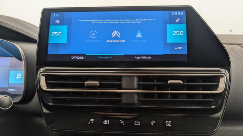 Projecteurs antibrouillard avec éclairage statique d'intersection / Détection de sous-gonflage / Pack Color Dark Chrome : Inserts colorés Dark Chrome sur Airbump et bouclier AV / Accès et démarrage mains libres / Kit de dépannage provisoire des pneumatiques / Pack Safety : Régulateur-limiteur de vitesse Coffee Break Alert Alerte Risque Collision Active Safety Brake fonctionne de 10 à 85 km/h et détecte les piétons Reconnaissance des panneaux de vitesse Alerte active de Franchissement Involontaire de ligne / Elargisseurs d'aile et bas de caisse Noir Mat / Sécurité enfants mécanique / 3 sièges AR indépendants, coulissants, inclinables et escamotables / Enjoliveurs de contour de vitres latérales chromés / Essuie-vitres AV automatique Magic Wash / Pare-chocs AR avec double canule chromée / Sièges Advanced Comfort / Combiné numérique 12,3" personnalisable / Vitres latérales AV feuilletées et acoustiques / ABS + AFU + ESP + REF / Suspension Citroën Advanced Comfort / Câble de recharge Mode 2, prise de charge T2/EF, longueur 6 mètres / Garnissage Alcantara Noir/Tissu effet cuir Noir/Ambiance Urban Black avec Sièges Advanced Comfort / Barres de toit Noir Brillant avec insert Noir mat / My Citroën Drive avec écran tactile 10" Comprend le système de navigation TomTom, la reconnaissance vocale / My Citroën Play Hybrid avec tablette tactile 10" / Aide au stationnement AV + Caméra de recul avec Top Rear Vision / Feux diurnes à LED avec clignotants à LED / Sabots de protection Aluminium Brillant / Accoudoir central mousséà ouverture papillon et réfrigéré / Calandre Noir Brillant avec chevrons noir brillant et entourage Chrome / Enjoliveur de montant central Noir Brillant / Eclairage d'accueil et d'accompagnement / Prises 12 V sur la console centrale et dans le coffre / Jantes alliage 18" PULSAR Diamantées bi-ton / Pack Safety + : Système de surveillance d'angle mort Active Safety Brake 2.0 Fonctionne à l'aide d'un Radar de 7 à 140 km/h, même de nuit et détecte les cyclistes / Pack Drive Assist : Reconnaissance des panneaux de vitesse Commutation automatique des feux de route Reconnaissance étendue des panneaux Régulateur de vitesse adaptatif avec fonction Stop&Go / My Citroën Assist : Citroën Connect Box avec Pack SOS et assistance inclus / Rétroviseur intérieur électrochrome / Siège conducteur avec réglage lombaire et accoudoir / Frein de stationnement électrique automatique / Pédalier et repose pieds aluminium /