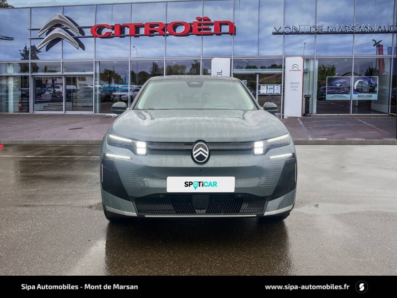 1 prise USB type-C rétroéclairées à l'AV (charge) / 2 prises USB type-C rétroéclairées à l'AR console centrale (charge) / 3 prises 12V Prises situées dans le Rang 1 console centrale, rang 2 AR console centrale et coffre / ABS + AFU + ESP + REF / Accès et démarrage mains libres Proximity 2 Télécommandes 3 boutons (verrouillage, coffre et déverrouillage). / Accoudoir central AV avec rangement fermé et réfrigéré / Aérateurs de climatisation centraux pour les passagers AR / Aide au stationnement AV avec VisioPark 360° Comprend 4 caméras haute définition ainsi que 8 capteurs répartis autour du véhicule, offrant une vision à 360° de l'environnement. / Allumage adaptative des feux de croisement / Avertisseur Sonore Piéton / Banquette AR avec dossier rabattable 40/20/40 / Banquette AR avec dossiers inclinables et accoudoir central / Bluetooth (connexion simultanée 2 télephones) / Boîte automatique 1 vitesse / Boitier télématique: Appel d'urgence et Citroën Assistance avec télémaintenance. Comprend les services Connect ONE pendant une période de 10 ans / Câble de recharge mode 3 (Wallbox), triphasé 22 kW / Calandre Noir Brillant / Chargeur embarqué 11 kW triphasé bidirectionnel avec fonction V2L Fonction V2L (Vehicle To Load): utilisation de l'électricité de la batterie pour alimenter des appareils externes, transformant ainsi la voiture en une source d'alimentation mobile et flexible. Adaptateur fonction V2L disponible en accessoirie. / Clean Cabin avec détecteur de qualité de l'air Le système détecte les particules fines et active automatiquement le recyclage de l'air ambiant. / Color Clip Gold Satin / Combiné numérique 10" personnalisable / Détection de sous-gonflage / Eclairage d'ambiance étendu, 8 couleurs Éclairage d'ambiance étendu le long de la planche de bord, des tweeters, des panneaux de porte AV et sous l'écran cascade / Eclairage intérieur LED Comprend l'éclairage à LED des plafonniers AV et AR, ainsi que l'éclairage des miroirs de courtoisie. / Ecran Cascade avec Navigation 3D Connectée Comprend le système de navigation TomTom, la reconnaissance vocale et les services Connect PLUS additionnels. Jusqu'à 8 profils. / Ecran central vertical 13" tactile / E-Remote (commande à distance): Contrôle de la charge et Pré-conditionnement thermique Commande via l'application MyCitroën / E-Routes (planificateur de voyage intelligent) Commande via l'application ë-routes, avec duplication de l'écran du smartphone / Essuie-vitres AV automatique Magic Wash / Feux AR à LED Citroën Light Wings / Feux diurnes avec clignotants à LED / Frein de stationnement électrique / Garnissage Tissu Blue / Toile enduite Premium Blue Ambiance Hype Blue + Sièges Advanced Comfort / Hayons motorisé mains libres / Lève-vitres électriques AV/AR séquentiels anti-pincement / Pack Design - Décors de pare-chocs AV et AR Noir Brillant - Lame AV peinture satinée / Pack Drive Assist 2.0 - Aide au positionnement dans la voie - Alerte de trafic en marche AR (jusqu'à 40 mètres) - Assistance semi-automatique au changement de voie - Caméra d'alerte attention conducteur - Préconisation anticipée des limitations de vitesse - Système de surveillance d'angle mort longue distance (jusqu'à 75 mètres) / Pack Safety - Affichage de la limitation de vitesse - Alerte active de Franchissement Involontaire de Ligne - Alerte attention conducteur - Coffee Break Alert - Reconnaissance étendue des panneaux de signalisation et recommandation de vitesse / Pare-brise feuilleté / Pare-chocs AV Aéro / Pédalier et repose pieds aluminium / Plancher de coffre modulable à 2 positions / Poignées de maintien couleur chrome / Poignées de portes extérieures couleur caisse / Prédisposition attelage / Projecteurs Citroën Matrix LED / Recharge rapide en courant continu de 160 kW (borne publique) / Recharge sans fil pour smartphone / Rétroviseur intérieur électrochrome / Rétroviseurs extérieurs indexés à la marche AR et mémorisation / Services Connect PLUS Comprend les services Connect Plus pour une période de 1 an / Siège conducteur à réglage électrique (8 directions) avec mémoire de position / Suspension Citroën Advanced Comfort / TCS (Contrôle de la traction) / Témoin de non-bouclage des ceintures de sécurité conducteur et passager / Trip Planner avec planification des recharges Gratuit pendant une période de 12 mois / Vitres AR, vitres de custode et lunette AR surteintées / Volant chauffant / Volant gainé multifonctions avec décor Noir Brillant