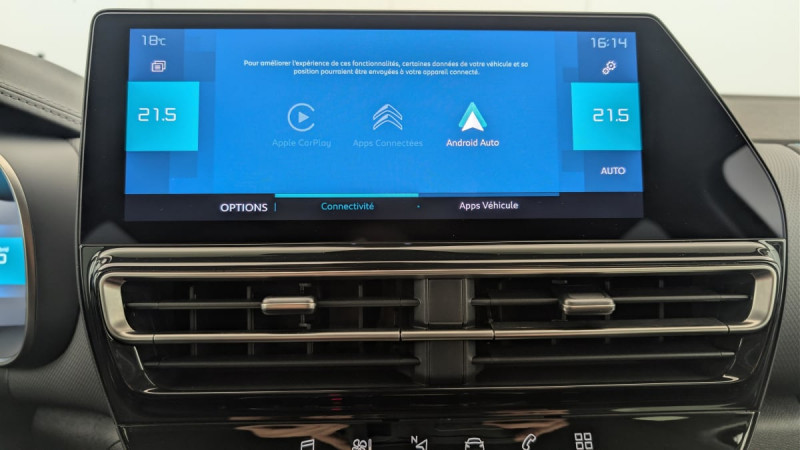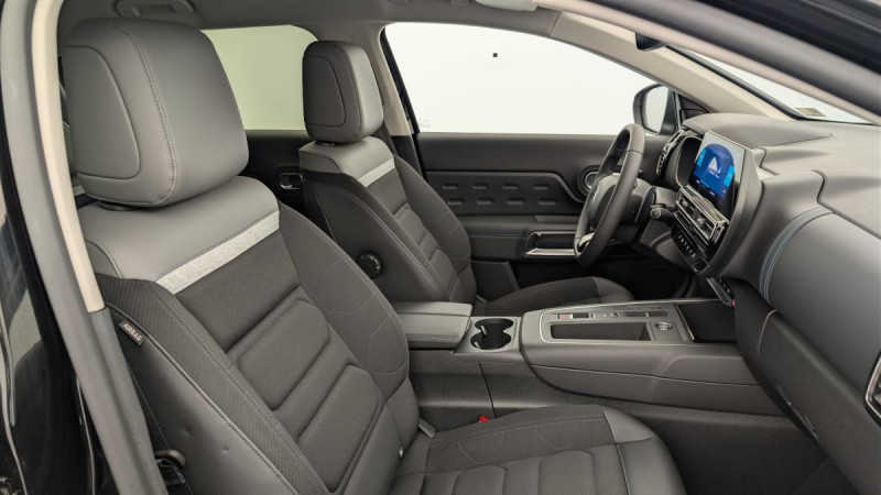 Détection de sous-gonflage / Kit de dépannage provisoire des pneumatiques / Pack Safety - Active Safety Brake - Alerte active de Franchissement Involontaire de Ligne - Alerte Attention Conducteur - Alerte Risque Collision - Coffee Break Alert - Reconnaissance des panneaux de vitesse et recommandation - Régulateur-limiteur de vitesse - Témoin de non-bouclage des ceintures de sécurité conducteur et passagers : Régulateur-limiteur de vitesse Coffee Break Alert Alerte Risque Collision Active Safety Brake fonctionne de 10 à 85 km/h et détecte les piétons Alerte active de Franchissement Involontaire de ligne Reconnaissance des panneaux de vitesse et recommandation / Elargisseurs d'aile et bas de caisse Noir Mat / 3 sièges AR indépendants, coulissants, inclinables et escamotables / Enjoliveurs de contour de vitres latérales chromés / Essuie-vitres AV automatique Magic Wash / Calandre supérieure Noir Brillant / Combiné numérique 12,3" personnalisable / ABS + AFU + ESP + REF / Suspension Citroën Advanced Comfort / Siège conducteur avec réglage lombaire / Câble de recharge Mode 2, prise de charge T2/EF, longueur 6 mètres / Garnissage Tissu SAO Noir/Tissu effet cuir Gris/Ambiance Wild Black avec Sièges Advanced Comfort / Pack Color Noir Brillant : Inserts colorés Noir Brillant sur Airbump et bouclier AV / Feux diurnes à LED avec clignotants à LED / Prises 12 V sur la console centrale et dans le coffre / Jantes alliage 18" PULSAR Diamantées bi-ton / Pack Nav : Navigation sur écran central 10" tactile -Comprend le système de navigation TomTom, la a reconnaissance vocale avec langage naturel, l'interface personnalisable, et les services Connect PLUS additionnels : Navigation sur écran central 10" tactile Comprend système de navigation TomTom, la reconnaissance vocale et les services Connect PLUS additionnels / Boîtier télématique : Appel d'urgence / Rétroviseur intérieur électrochrome / Frein de stationnement électrique automatique /