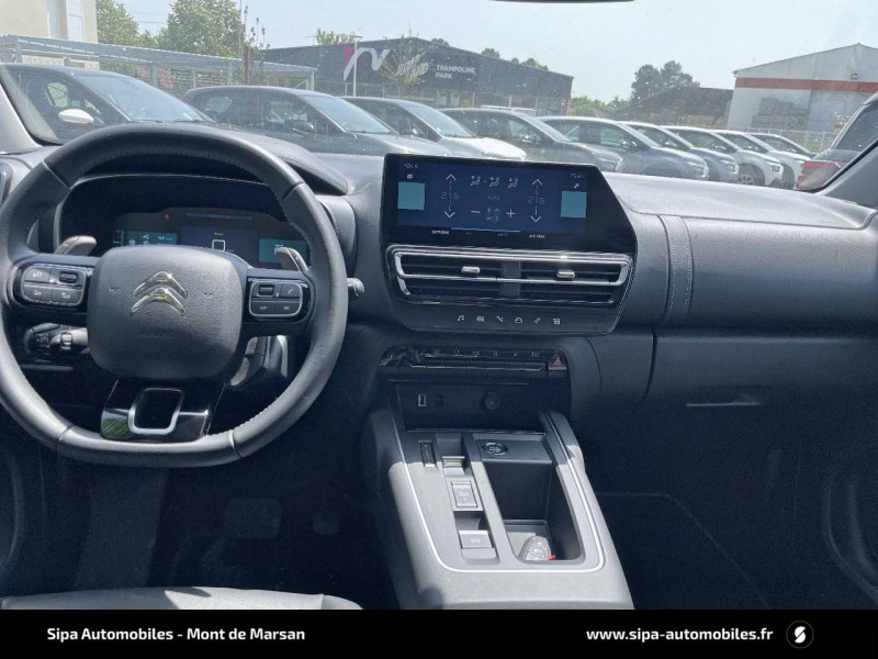 3 sièges AR indépendants, coulissants, inclinables et escamotables / ABS + AFU + ESP + REF / Accès et démarrage mains libres / Aide au stationnement AV + Caméra de recul avec Top Rear Vision Comprend les Projecteurs antibrouillard avec éclairage statique d'intersection. / Câble de recharge Mode 2, prise de charge T2/EF, longueur 6 mètres / Calandre supérieure Noir Brillant / Chargeur embarqué 3,7 kW / Combiné numérique 12,3" personnalisable / Détection de sous-gonflage / Elargisseurs d'aile et bas de caisse Noir Mat / Enjoliveurs de contour de vitres latérales chromés / Essuie-vitres AV automatique Magic Wash / Feux diurnes à LED avec clignotants à LED / Frein de stationnement électrique automatique / Garnissage Tissu SAO Noir/Tissu effet cuir Gris/Ambiance Wild Black avec Sièges Advanced Comfort / Inserts colorés Noir Brillant sur Airbump et bouclier AV / Jantes alliage 18" PULSAR Diamantées bi-ton / Kit de dépannage provisoire des pneumatiques / My Citroën Assist : Citroën Connect Box avec Pack SOS et assistance inclus / My Citroën Drive avec écran tactile 10" Comprend le système de navigation TomTom, la reconnaissance vocale et durant 3 ans les services Connect Nav / My Citroën Play Hybrid avec tablette tactile 10" / Pack Safety + / Pack Safety - Active Safety Brake - Alerte active de Franchissement Involontaire de Ligne - Alerte Attention Conducteur - Alerte Risque Collision - Coffee Break Alert - Reconnaissance des panneaux de vitesse et recommandation - Régulateur-limiteur de vitesse - Témoin de non-bouclage des ceintures de sécurité conducteur et passagers / Pare-chocs AR avec double canule chromée / Personnalisation extérieure C-Series : badges C-Series sur les ailes AV, inserts sur les Airbump et inserts sur le bouclier AV Bronze Anodisé. / Prises 12 V sur la console centrale et dans le coffre / Projecteurs antibrouillard avec éclairage statique d'intersection / Rétroviseur intérieur électrochrome / Sabots de protection Aluminium Brillant / Siège conducteur avec réglage lombaire / Sièges Advanced Comfort / Suspension Citroën Advanced Comfort / Vitres latérales AV feuilletées et acoustiques