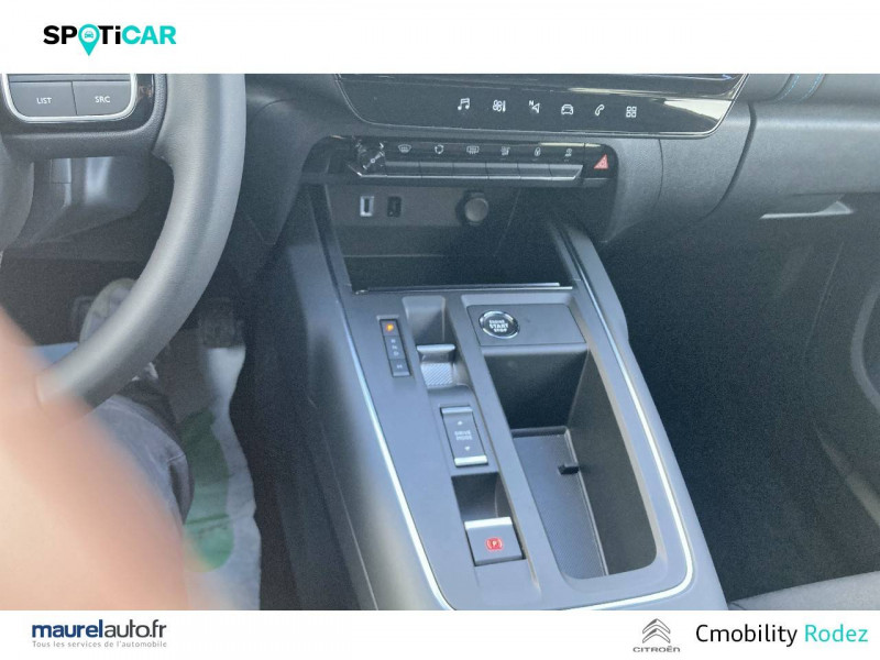 3 sièges AR indépendants, coulissants, inclinables et escamotables / ABS + AFU + ESP + REF / Accès et démarrage mains libres / Boîte automatique 6 rapports / Boîtier télématique : Appel d'urgence et Citroën Assistance les services Connect ONE pendant une période de 10 ans / Calandre supérieure Noir Brillant / Caméra de recul avec Top Rear Vision / Combiné numérique 12,3" personnalisable / Détection de sous-gonflage / Elargisseurs d'aile et bas de caisse Noir Mat / Enjoliveurs de contour de vitres latérales chromés / Essuie-vitres AV automatique Magic Wash / Feux diurnes à LED avec clignotants à LED / Frein de stationnement électrique automatique / Garnissage Tissu Silica Grey / Navigation 3D sur écran central 10" tactile Comprend le système de navigation TomTom, la reconnaissance vocale avec langage naturel, l'interface personnalisable, et les services Connect PLUS additionnels / Pack Color Noir Brillant Inserts colorés Noir Brillant sur Airbump et bouclier AV / Pack Safety - Active Safety Brake - Alerte active de Franchissement Involontaire de Ligne - Coffee Break Alert - Reconnaissance étendue des panneaux et recommandation de vitesse - Régulateur-limiteur de vitesse / Plancher de coffre escamotable / Poignées de portes extérieures Noir Brillant / Prise 12V sur la console centrale / Sabot de protection Noir Brillant / Services Connect PLUS pendant 12 mois / Suspension Citroën Advanced Comfort / TCS (Contrôle de la traction)