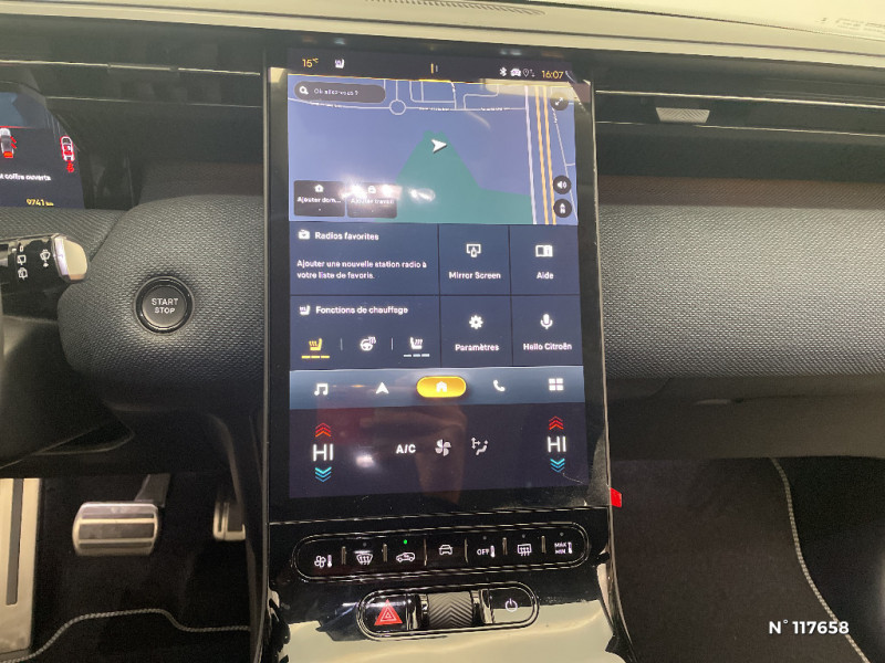 Pédalier et repose pieds aluminium / Allumage adaptative des feux de croisement / Volant chauffant / Eclairage intérieur LED Comprend l?éclairage à LED des plafonniers AV et AR, ainsi que l?éclairage des miroirs de courtoisie. / Garnissage Tissu Blue / Toile enduite Premium Blue Ambiance Hype Blue + Sièges Advanced Comfort.Comprend les appuie-tête des sièges AV à réglages intégrés, le siège conducteur avec réglage électrique (8 voies) avec fonction mémorisation, le siège passager avec réglage lombaire (6 voies), les sièges AV chauffants, les poches aumônières et porte-téléphone au dos des sièges AV, le "Sofa Design" avec insert de planche de bord et panneaux des portes en textile Sofa Bleu, ainsi que l?éclairage LED aux pieds / Aide au stationnement AV avec VisioPark 360° Comprend 4 caméras haute définition ainsi que 8 capteurs répartis autour du véhicule, offrant une vision à 360° de l?environnement. / Calandre Noir Mat / Feux AR à LED Citroën Light Wings / Feux diurnes avec clignotants à LED / Accoudoir central AV avec rangement fermé et réfrigéré / Combiné numérique 10" personnalisable / Boitier télématique: Appel d?urgence et Citroën Assistance Comprend les services Connect ONE pendant une période de 10 ans / Suspension Citroën Advanced Comfort / ABS, ESP / Pare-brise feuilleté / Lève-vitres électriques AV/AR séquentiels anti-pincement / Clean Cabin avec détecteur de qualité de l?air Le système détecte les particules fines et active automatiquement le recyclage de l?air ambiant. / Siège conducteur à réglage électrique (8 directions) avec mémoire de position / Vitres AR, vitres de custode et lunette AR surteintées / Color Clip Gold Satin / Pack Drive Assist 2.0 - Aide au positionnement dans la voie - Alerte de trafic en marche AR (jusqu?à 40 mètres) - Assistance semi-automatique au changement de voie - Caméra d?alerte attention conducteur - Préconisation anticipée des limitations de vitesse - Système de surveillance d?angle mort longue distance (jusqu?à 75 mètres) / Calandre Noir Brillant / Recharge sans fil pour smartphone / Essuie-vitres AV automatique Magic Wash / Hayons motorisé mains libres / Rétroviseur intérieur électrochrome / Accès et démarrage mains libres Proximity / Ecran central vertical 13" tactile / Bluetooth (connexion simultanée 2 télephones) / Poignées de maintien couleur chrome / Banquette AR avec dossier rabattable 40/20/40 / Frein de stationnement électrique / TCS (Contrôle de la traction) / Plancher de coffre modulable à 2 positions / Prédisposition attelage / Volant gainé multifonctions avec décor Noir Brillant / Pack Design - Décors de pare-chocs AV et AR Noir Brillant - Lame AV peinture satinée / Banquette AR avec dossiers inclinables et accoudoir central / Eclairage d?ambiance étendu, 8 couleurs Éclairage d?ambiance étendu le long de la planche de bord, des tweeters, des panneaux de porte AV et sous l?écran cascade / Ecran Cascade avec Navigation 3D Connectée Comprend le système de navigation TomTom, la reconnaissance vocale et les services Connect PLUS additionnels. Jusqu?à 8 profils. / 1 prise USB type-C rétroéclairées à l?AV (charge) / Boîte automatique 6 rapports / Poignées de portes extérieures couleur caisse / Equipements de sécurité ABS avec répartiteur électronique de freinage (REF) , Freinage d?urgence automatique post-collision (AFU), ESP avec aide au démarrage en côte, Airbags (frontaux, latéraux AV et rideaux), Détection de sous-gonflage, Fixations ISOFIX et Top Tether sur les sièges latéraux AR / Pack Safety - Affichage de la limitation de vitesse - Alerte active de Franchissement Involontaire de Ligne - Alerte attention conducteur - Coffee Break Alert - Reconnaissance étendue des panneaux de signalisation et recommandation de vitesse / 2 prises USB type-C rétroéclairées à l?AR console centrale (charge) / Aérateurs de climatisation centraux pour les passagers AR / Projecteurs Citroën Matrix LED
