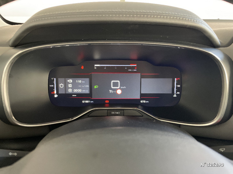 Frein de stationnement électrique automatique / Garnissage Tissu Stone Grey/Tissu effet cuir Noir/Ambiance Wild Grey Evo / Inserts colorés Silver Anodisé sur Airbump et bouclier AV / Jantes alliage 18" SWIRL Diamantées / Jantes alliage 18" SWIRL Diamantées / Jantes alliage 18" SWIRL Diamantées bi-ton / Kit de dépannage provisoire des pneumatiques / ABS + AFU + ESP + REF / ABS + REF / Accès et démarrage mains libres / Ambiance intérieure C-Series / Badge C-Séries / Barres de toit bi-ton Deep Red Anodisé / Caméra de recul avec Top Rear Vision / Caméra de recul avec Top Rear Vision+ Aide au stationnement avant / CITROËN Connect Nav avec Mirror screen + CITROËN Connect Box avec Pack SOS et assistance inclus / Mirror Screen Compatible avec Android Auto et Apple CarPlayTM / Pack Drive Assist / Pack Drive Assist / Pack Look Deep Red Anodisé / Pack Safety+ / Pack Safety + / Pack Safety - Active Safety Brake - Alerte active de Franchissement Involontaire de Ligne - Alerte Attention Conducteur - Alerte Risque Collision - Coffee Break Alert - Reconnaissance des panneaux de vitesse et recommandation - Régulateur-limiteur de vitesse - Témoin de non-bouclage des ceintures de sécurité conducteur et passagers / Pare-chocs AR avec double canule chromée / Personnalisation extérieure C-Series les badges C-Series sur les portes AV, les inserts sous barres de toit, les inserts sur les Airbump, les inserts sur le bouclier avant et les enjoliveurs de projecteurs, coques de rétroviseurs extérieurs Deep Red Adonise / Plancher de coffre escamotable / Teinte de caisse opaque Blanc Banquise / 3 sièges AR indépendants, coulissants, inclinables et escamotables / Prises 12V sur la console centrale et dans le coffre / Projecteurs antibrouillard avec éclairage statique d'intersection / Rétroviseur intérieur électrochrome / Siège conducteur avec réglage lombaire et accoudoir / Sièges Advanced Comfort / Surtapis AV et AR / Suspension Citroën Advanced Comfort / Suspensions avec Butées Hydrauliques Progressives / Citroën Connect Nav et Citroën Connect Box avec Pack SOS et assistance inclus Comprend le système de navigation TomTom, la reconnaissance vocale et durant 3 ans les services Connect Nav (inclut les services « Zones de danger », « Info Trafic », « Stations-service », « Parkings », « Météo » et « Recherche locale »). / Citroën Connect Radio numérique (DAB) sur tablette tactile 8¿¿ / Citroën Connect Radio sur tablette tactile 8" / Clignotants AV à LED / Combiné numérique 12,3" personnalisable / Détection de sous-gonflage / Elargisseurs d'aile et bas de caisse Noir Mat / Enjoliveurs de contour de vitres latérales chromés / ESP et AFU / Essuie-vitres AV automatique Magic Wash