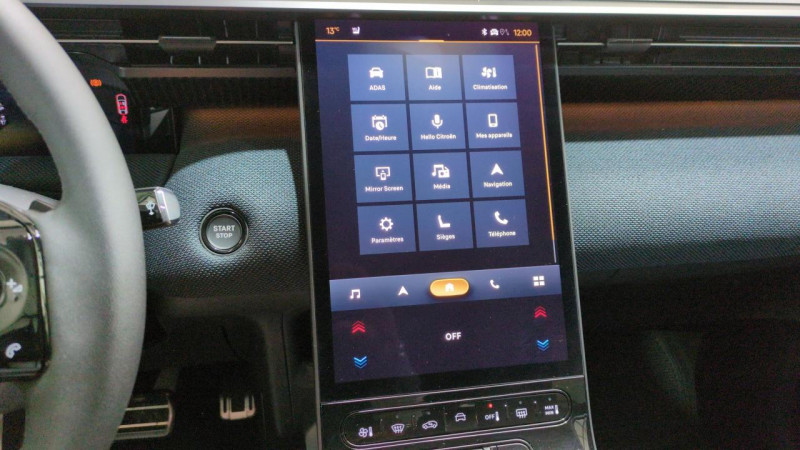 1 prise usb type-c rétroéclairées à l'av (charge) / 2 prises usb type-c rétroéclairées à l'ar console centrale (charge) / 3 prises 12v prises situées dans le rang 1 console centrale / 8 couleurs Éclairage d'ambiance étendu le long de la planche de bord / Abs + afu + esp + ref / Accès et démarrage mains libres proximity 2 télécommandes 3 boutons (verrouillage / Accoudoir central av avec rangement fermé et réfrigéré / Aide au stationnement av avec visiopark 360° comprend 4 caméras haute définition ainsi que 8 capteurs répartis autour du véhicule / Ainsi que l'éclairage des miroirs de courtoisie. / Allumage adaptative des feux de croisement / Banquette ar avec dossier rabattable 40/20/40 / Banquette ar avec dossiers inclinables et accoudoir central / Bluetooth (connexion simultanée 2 télephones) / Boîte automatique 6 rapports / Calandre noir brillant / Clean cabin avec détecteur de qualité de l'air le système détecte les particules fines et active automatiquement le recyclage de l'air ambiant. / Coffre et déverrouillage) / Color clip gold satin / Combiné numérique 10" personnalisable / Des panneaux de porte av et sous l'écran cascade / Des tweeters / Détection de sous-gonflage / Eclairage d'ambiance étendu / Eclairage intérieur led comprend l'éclairage à led des plafonniers av et ar / Ecran cascade avec navigation 3d connectée comprend le système de navigation tomtom. jusqu'à 8 profils. / Ecran central vertical 13" tactile / Essuie-vitres av automatique magic wash / Feux ar à led citroën light wings / Feux diurnes avec clignotants à led / Frein de stationnement électrique / Garnissage tissu blue / toile enduite premium blue ambiance hype blue + sièges advanced comfort / Hayon motorisé mains libres / Lève-vitres électriques av/ar séquentiels anti-pincement / Offrant une vision à 360° de l'environnement. / Pack design - décors de pare-chocs av et ar noir brillant - lame av peinture satinée / Pack drive assist 2.0 - aide au positionnement dans la voie - alerte de trafic en marche ar (jusqu'à 40 mètres) - assistance semi-automatique au changement de voie - caméra d'alerte attention conducteur - préconisation anticipée des limitations de vitesse - système de surveillance d'angle mort longu / Pack safety - affichage de la limitation de vitesse - alerte active de franchissement involontaire de ligne - alerte attention conducteur - coffee break alert - reconnaissance étendue des panneaux de signalisation et recommandation de vitesse / Pare-brise chauffant / Pare-brise feuilleté / Pédalier et repose pieds aluminium / Plancher de coffre modulable à 2 positions / Poignées de maintien couleur chrome / Poignées de portes extérieures couleur caisse / Prédisposition attelage / Projecteurs citroën matrix led / Rang 2 ar console centrale et coffre / Recharge sans fil pour smartphone / Rétroviseur intérieur électrochrome / Rétroviseurs extérieurs indexés à la marche ar et mémorisation / Siège conducteur à réglage électrique (8 directions) avec mémoire de position / Suspension citroën advanced comfort / Teinte de caisse métallisée bleu eclipse / Vitres ar / Vitres de custode et lunette ar surteintées / Volant chauffant / Volant gainé multifonctions avec décor noir brillant