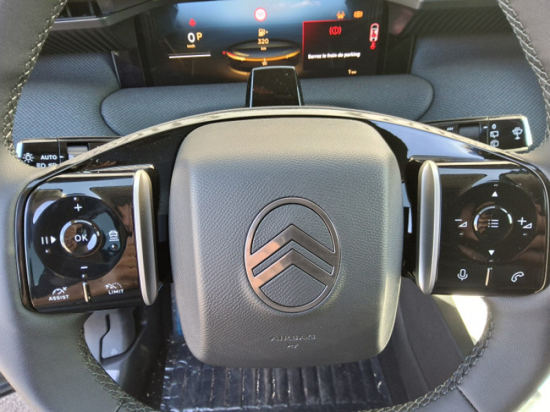 1 prise USB type-C retroeclairees a lAV (charge) / 2 prises USB type-C retroeclairees a lAR console centrale (charge) / ABS, ESP / Acces et demarrage mains libres Proximity / Accoudoir central AV avec rangement ferme et refrigere / Aerateurs de climatisation centraux pour les passagers AR / Aide au stationnement AV avec VisioPark 360° / Allumage adaptative des feux de croisement / Banquette AR avec dossier rabattable 40/20/40 / Banquette AR avec dossiers inclinables et accoudoir central / Bluetooth (connexion simultanee 2 telephones) / Boite automatique 6 rapports / Boitier telematique: Appel durgence et Citroen Assistance / Calandre Noir Brillant / Calandre Noir Mat / Clean Cabin avec detecteur de qualite de lair / Color Clip Gold Satin / Combine numerique 10" personnalisable / Eclairage dambiance etendu, 8 couleurs / Eclairage interieur LED / Ecran Cascade avec Navigation 3D Connectee / Ecran central vertical 13" tactile / Equipements de securite / Essuie-vitres AV automatique Magic Wash / Feux AR a LED Citroen Light Wings / Feux diurnes avec clignotants a LED / Frein de stationnement electrique / Garnissage Tissu Blue / Toile enduite Premium Blue / Hayons motorise mains libres / Leve-vitres electriques AV/AR sequentiels anti-pincement / Pack Design / Pack Drive Assist 2.0 / Pack Safety / Pare-brise feuillete / Pedalier et repose pieds aluminium / Plancher de coffre modulable a 2 positions / Poignees de maintien couleur chrome / Poignees de portes exterieures couleur caisse / Predisposition attelage / Projecteurs Citroen Matrix LED / Recharge sans fil pour smartphone / Retroviseur interieur electrochrome / Siege conducteur a reglage electrique (8 directions) avec memoire de position / Suspension Citroen Advanced Comfort / TCS (Controle de la traction) / Vitres AR, vitres de custode et lunette AR surteintees / Volant chauffant / Volant gaine multifonctions avec decor Noir Brillant